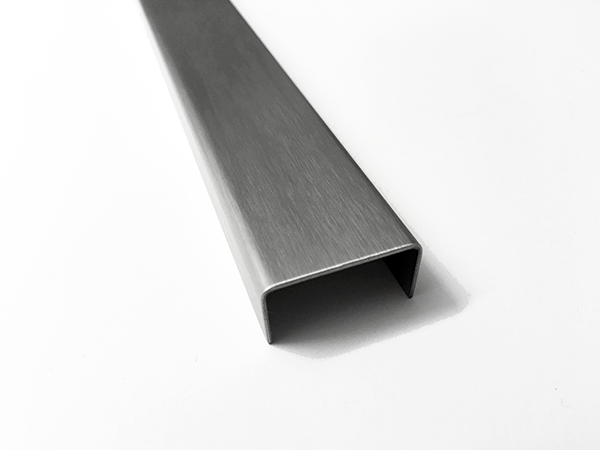 Das Profil ist aus richtig hochwertigem Edelstahl 1.4301 gemacht und hat diese schicke gebürstete Oberfläche (K320). Die Sichtseite ist sogar foliert, damit beim Einbau nix verkratzt - die Folie ziehst du einfach erst am Schluss ab.