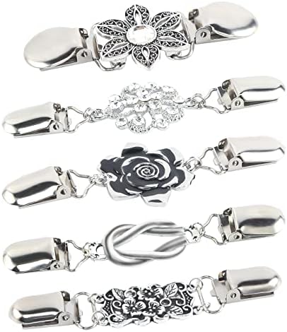 Stylish und praktisch! Diese 6 Vintage Pullover Clips in silber mit wunderschönem Blumenmuster sind echte Hingucker. Aus hochwertiger Zinklegierung, poliert und mit Strasssteinen verziert. Super einfach zu bedienen - einfach Entenschnabelklappe öffnen, Stoff einlegen und zuklicken. Perfekt für Pullover, Cardigans, Schals, Umhänge oder Kleider. Verhindert das Verrutschen und gibt jedem Outfit einen retro-chic Touch. Ob formell oder lässig - diese Clips machen immer eine gute Figur. Auch ein tolles Geschenk für modebewusste Frauen!
