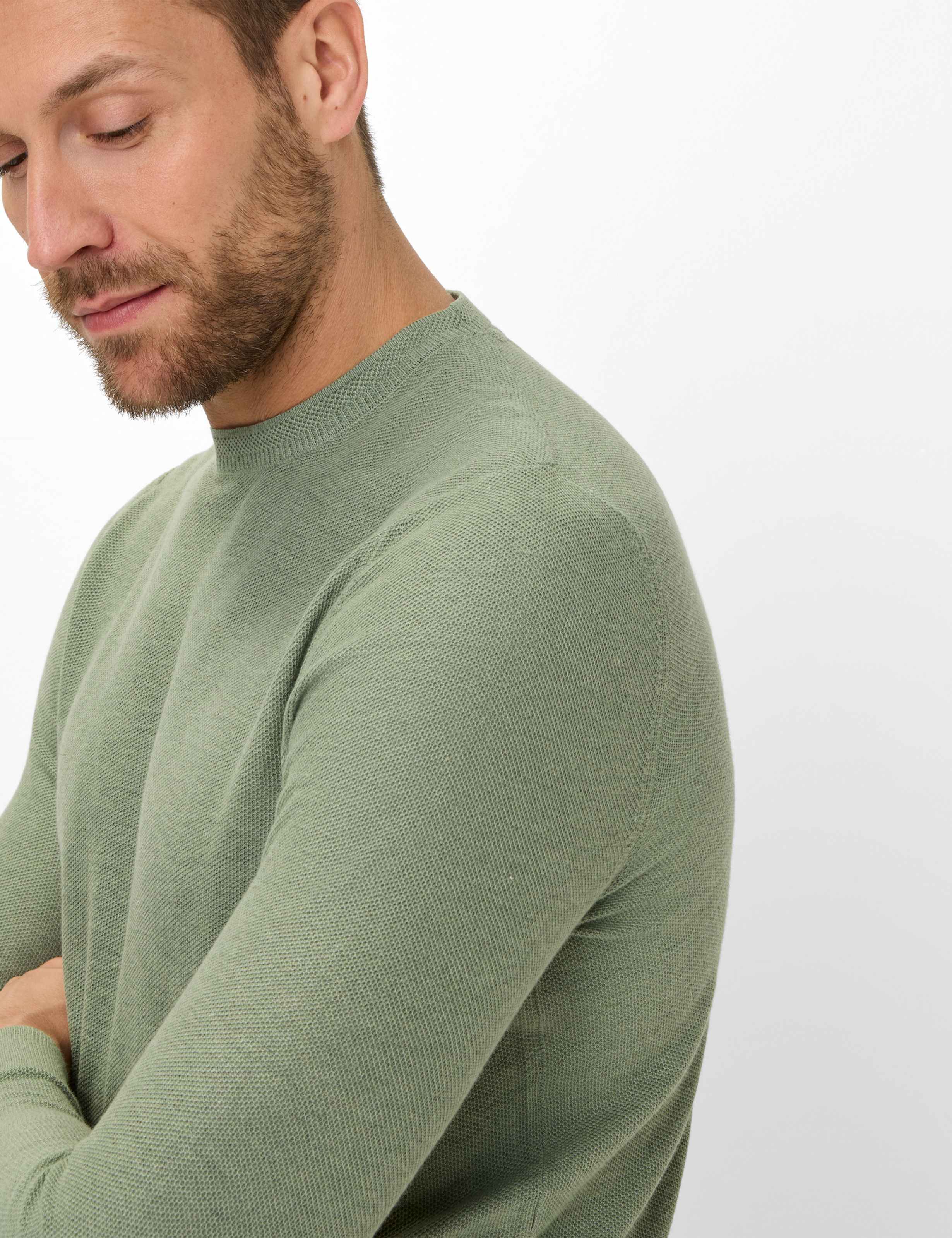 Stylish und kuschelig weich - der BRAX Lambswool Pullover im Style Rick ist ein Must-Have für jeden Herren! Aus feinster Lambswool (Lammwolle) gefertigt, bietet dieser Pullover optimalen Wärmekomfort ohne schwer zu sein. Das klassische Design mit modernem Schnitt macht ihn zum vielseitigen Begleiter für Büro, Freizeit und besondere Anlässe. Die hochwertige Verarbeitung und das angenehm weiche Material sorgen für ein traumhaftes Tragegefühl auf der Haut. Perfekt kombinierbar mit Jeans, Chinos oder Anzugshosen - ob lässig unter der Jacke oder elegant zum Hemd. Ein zeitloser Klassiker, der in keiner Herrengarderobe fehlen sollte. Einfach anziehen und wohlfühlen - Qualität, die man spürt!