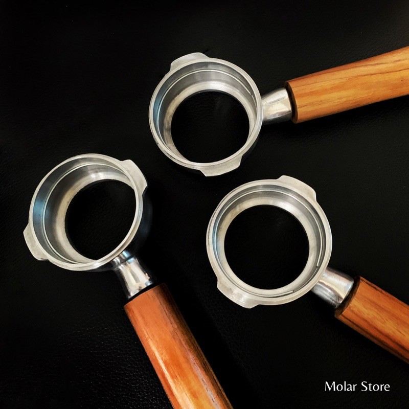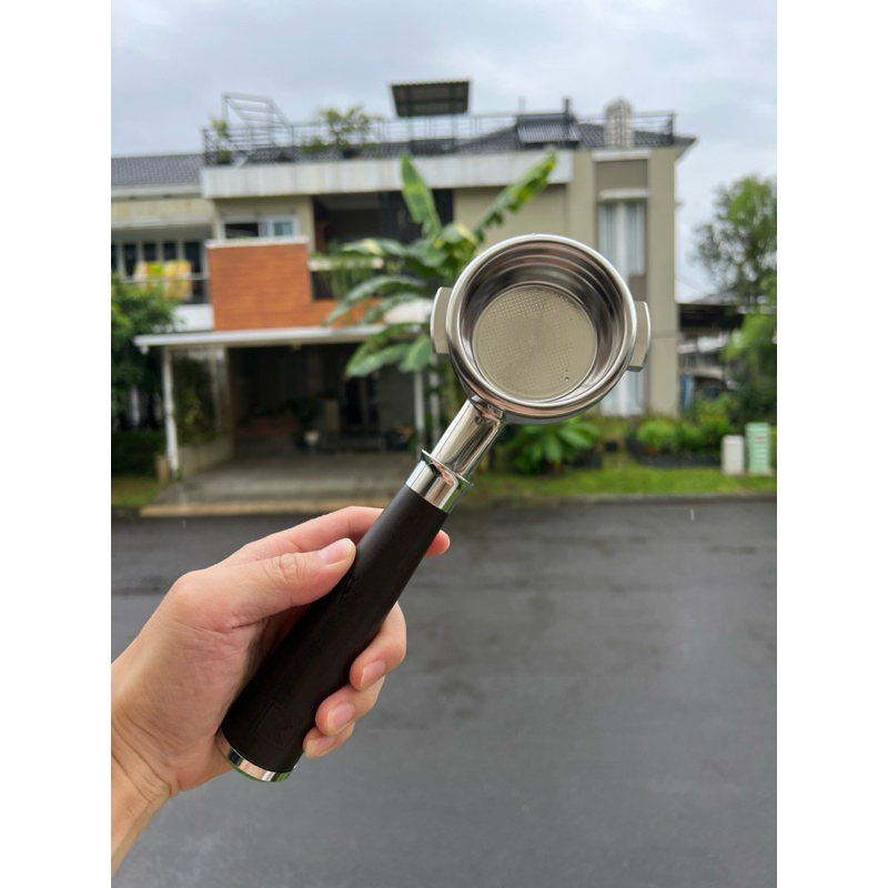 • Bodenloser Portafilter Edelstahl - Mit Pulver Catcher Und Holzgriff