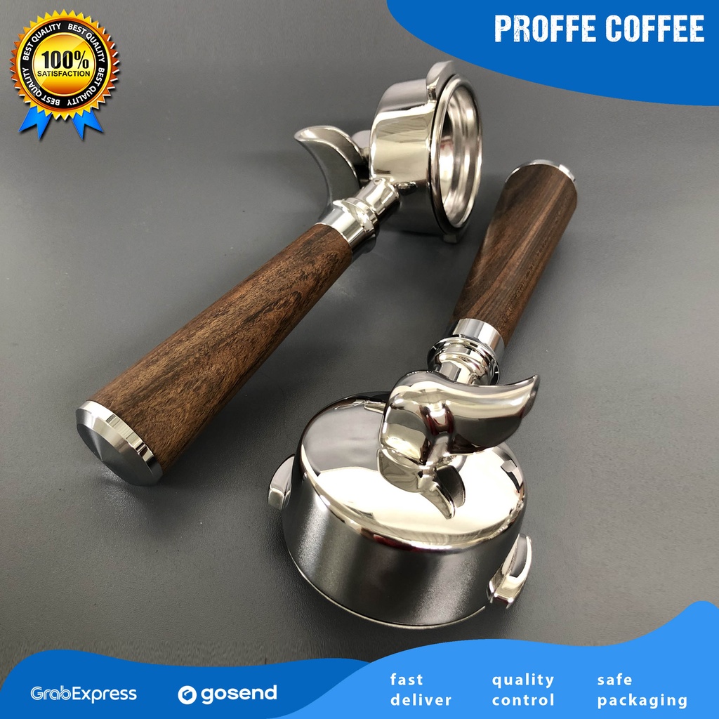 Bodenloser Portafilter Edelstahl - Mit Pulver Catcher Und Holzgriff