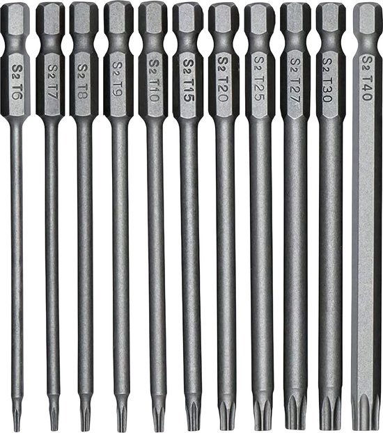 Schrauber aufgepasst! Dieses 19-teilige Torx-Bits-Set hat alles, was du brauchst. Mit 5-Punkt-Sicherheits-Bits in den Größen T10 bis T50 bist du für jede Schraube gewappnet. Jedes Bit ist aus hochwertigem S2-Stahl gefertigt und super-hart (61 RCH). Die Phosphatierung schützt vor Rost und die vernickelte Oberfläche hält ewig. Besonders praktisch: Es gibt jede Größe in 25mm und 60mm Länge, plus eine 75mm Verlängerung. So kommst du auch an schwer erreichbare Stellen. Perfekt für Auto, Motorrad, Möbelmontage oder Elektronik. Die Bits sind manipulationssicher - das Loch in der Mitte passt nur auf Sicherheits-Torx-Schrauben. Alles sicher verpackt in einer praktischen Aufbewahrungsbox. Ein Set für alle Fälle!