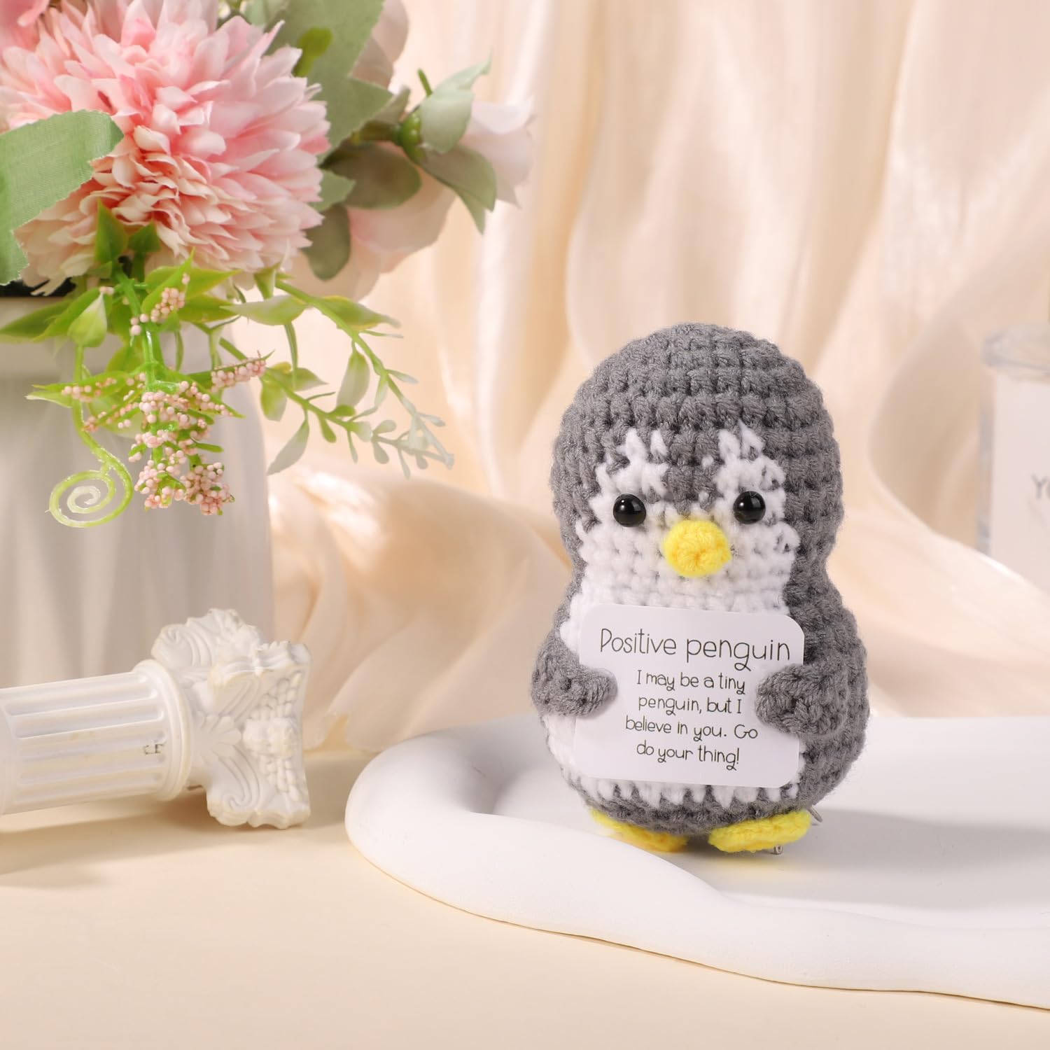 Oh wie süß! Dieser handgestrickte Pinguin ist einfach der perfekte kleine Aufmunterer für schlechte Tage. Mit nur 7x7cm Größe passt er in jede Handtasche - so hast du immer deinen persönlichen Glücksbringer dabei. Aus weichem Wollgarn handgenäht, fühlt er sich super kuschelig an und ist trotzdem robust genug für den Alltag. Zu jedem Pinguin gibt es eine inspirierende Grußkarte dazu - ideal, um jemandem eine Freude zu machen oder um sich selbst zu motivieren. Egal ob für Freunde, Kollegen oder Familienmitglieder - dieses kleine Kerlchen bringt einfach gute Laune! Ob als Reisebegleiter, Partydekoration oder als Trostspender in schwierigen Momenten - dieser Pinguin erinnert dich daran, dass in dir jede Menge positive Energie steckt. Und weil er handgemacht ist, hat jedes Exemplar seinen eigenen, einzigartigen Charakter. Vielseitiger kann ein Geschenk kaum sein - für Geburtstage, Prüfungen, Valentinstag oder einfach mal so!