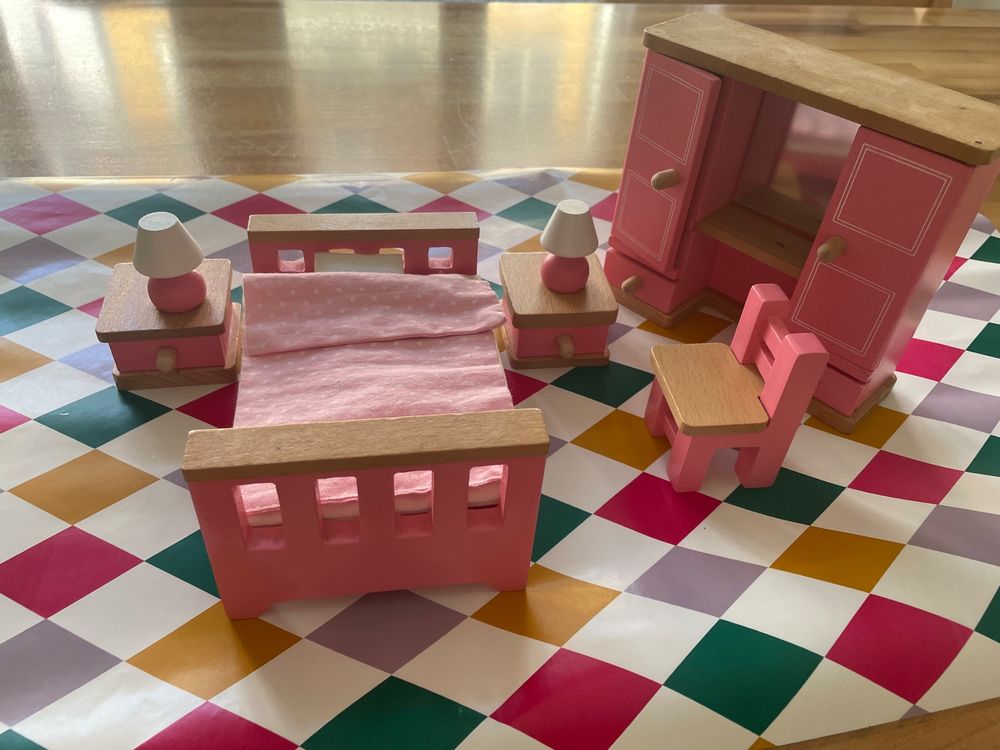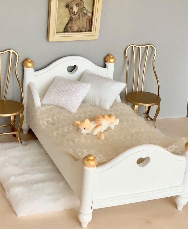 Oh wie süß! Dieses Puppenhaus-Schlafzimmer-Set bringt echtes Wohnzimmer-Feeling in die Spielwelt deiner Kinder. Das komplette Set besteht aus einem hübschen Holzbett mit wunderschönen Gravurdetails an Kopf- und Fußteil, plus einer gemusterten Matratze und niedlichem Kissen. Hergestellt aus stabilem Birkenholz, hält es auch wildere Spielstunden problemlos aus. Die Gravuren sehen so lebensecht aus, dass man fast meinen könnte, es wäre echtes Mobiliar im Miniaturformat. Das schlichte Blumenmuster auf Bettwäsche und Matratze passt zu jeder Puppenhaus-Einrichtung - ob modern oder klassisch. Einfach zusammenstellen und schon haben die Puppen ihr neues Traum-Schlafzimmer! Dieses Set ist nicht nur super zum Spielen, sondern sieht auch als Deko im Kinderzimmer klasse aus. Die Maße sind perfekt abgestimmt für die meisten Puppenhäuser. Deine Tochter oder dein Sohn wird begeistert sein, wenn die Puppen endlich ein richtiges Bett haben statt nur irgendeiner provisorischen Lösung. Und das Beste: Die Qualität stimmt! Keine scharfen Kanten, keine giftigen Farben - nur sorgfältig verarbeitetes Holz, das lange hält. Perfekt also nicht nur fürs tägliche Spielen, sondern auch als besonderes Geschenk zu Weihnachten oder zum Geburtstag. Egal ob für kleine Puppenmuttis oder angehende Interior-Designer - mit diesem Set machst du garantiert strahlende Kinderaugen! Und vielleicht spielst du ja sogar heimlich selbst mal damit, wenn die Kinder im Bett sind...