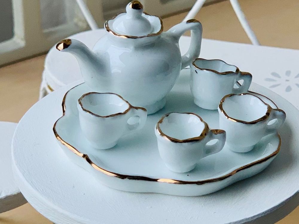 Dieses 15-teilige Miniatur-Teeservice für Puppenhäuser ist einfach entzückend! Im Maßstab 1:12 perfekt für Barbie-Häuser, Wichtelhäuser oder jede andere Puppenstube. Aus hochwertiger Keramik mit zartem vierblättrigen Kleeblattmuster - sieht aus wie ein echtes Teeservice in klein! Enthalten sind: 1 Teekanne, 1 Zuckerdose, 1 Milchkanne, 4 Teetassen, 4 Untertassen und 4 Keramikteller. Jedes Teil ist liebevoll gestaltet und fühlt sich richtig wertig an. Die Oberfläche ist glatt und verletzt keine kleinen Hände. Perfekt für Puppenhaus-Enthusiasten und Sammler, die Wert auf Details legen. Ob im Wohnzimmer, der Küche oder im Garten des Puppenhauses - damit kreierst du eine gemütliche Tee-Szene! Achtung: Nicht für Kinder unter 3 Jahren geeignet wegen verschluckbarer Kleinteile. Ein wunderbares Geschenk für Puppenhaus-Fans!