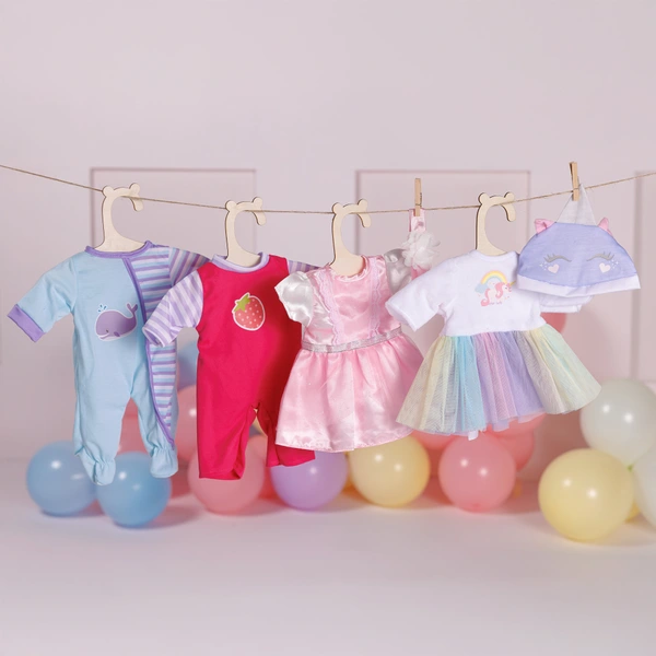 Wie süß ist das denn? Diese entzückenden Puppenkleider von Isa's Friends bringen Style in die Puppenstube! Perfekt für Puppen von 38-43 cm Größe - ob Baby Born, my Baby Annabell oder andere Lieblingspuppen. Dank der lockeren Passform können sich die Puppen problemlos die Kleidungsstücke untereinander ausleihen. Super praktisch für Puppen-Spieltage mit Freundinnen! Die Kleider sind einfach an- und auszuziehen und machen jedes Puppen-Outfit komplett. Ob für den täglichen Spielspaß oder besondere Anlässe - mit diesen Kleidern sind die Puppen immer perfekt angezogen. Die Qualität stimmt: Weiche Stoffe, gut verarbeitete Nähte und niedliche Designs begeistern kleine Puppenmuttis. Schau dir doch auch die anderen süßen Teile aus der Isa's Friends Kollektion an - perfekt für eine bunte Puppen-Pyjamaparty! Diese Kleider fördern die Kreativität der Kinder und machen das Puppenspiel noch lebendiger. Ein wunderbares Geschenk für kleine Puppen-Liebhaberinnen, die ihre Puppen immer neu einkleiden wollen. Die Augen der Kinder werden strahlen, wenn sie die niedlichen Kleider auspacken!