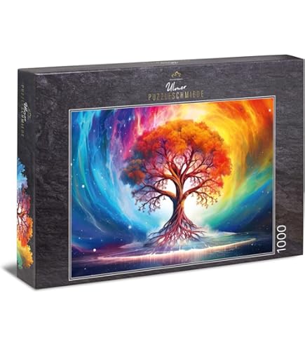 Puzzeln mal anders! Dieses 2000-Teile-Puzzle zeigt ein wunderschönes Baum-Motiv - nicht zu schwer, also auch für Einsteiger perfekt. Von der Ulmer Puzzleschmiede in bester Qualität: 1,75 mm starke Pappe, präzise gestanzt, Teile passen super. Das fertige Puzzle ist 96x68 cm groß. Die Schachtel ist edel designed (kein Spielzeug-Look!) und dient als Motivvorlage. Tolle Farben, scharfer Druck - einfach ein Premium-Puzzle für gemütliche Abende. Ob alleine oder mit Freunden - da kommt garantiert keine Langeweile auf. Ein Puzzle, das sich sehen lassen kann und nach dem Puzzeln als Bild an die Wand kommt!