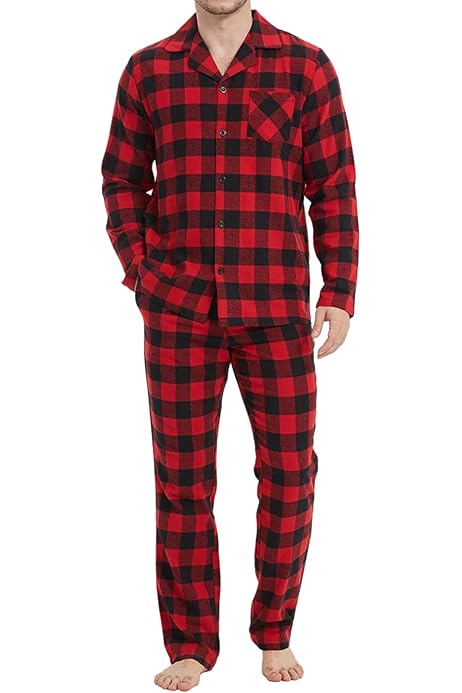 • Ekouaer Herren Schlafanzug Langarm - Karierte Pyjama Set Mit Tasche S-XXL