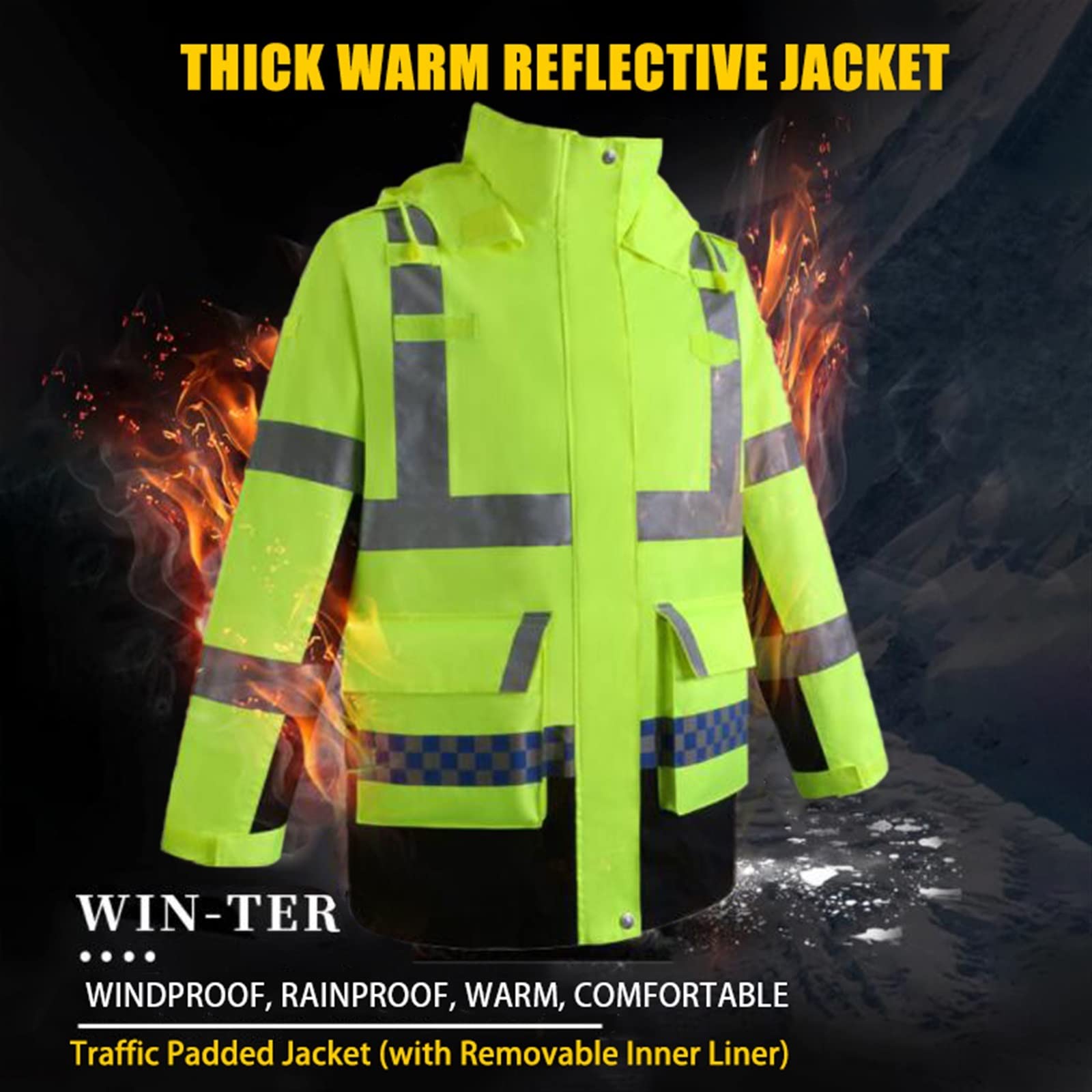 Für alle, die draußen arbeiten oder aktiv sind: Diese Sicherheitsjacke von QIULAO ist ein echter Alleskönner! Die Jacke ist komplett wasserdicht und hat superhelle reflektierende Streifen, die dich bei Dunkelheit optimal sichtbar machen. Das Besondere: Das Innenfutter ist mit 140g Entendaunen gefüllt und kann bei Bedarf einfach rausgenommen werden - so hast du eine Jacke für alle Jahreszeiten. Die Kapuze ist verstellbar und abnehmbar, und mit Reißverschluss und Knopfleiste bist du perfekt vor Wind und Kälte geschützt. Mehrere praktische Taschen mit Klettverschluss bieten Platz für alle deine Utensilien. Perfekt für Bauarbeiter, Sicherheitspersonal, Rettungskräfte, aber auch für Radfahrer, Jogger oder Motorradfahrer. In Größen von M bis 4XL ist für jeden was dabei - bei breiteren Figuren einfach eine Größe größer bestellen!