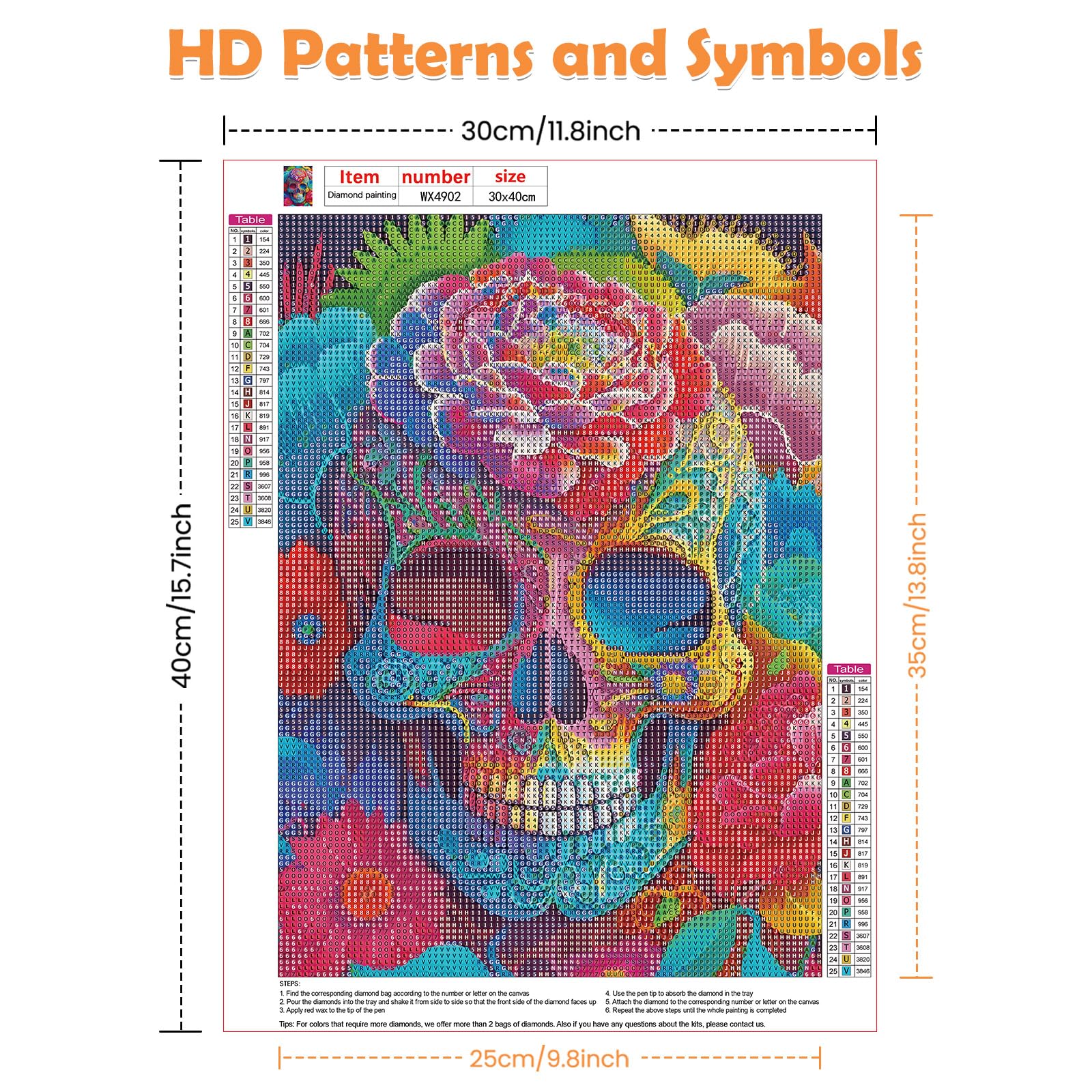 Entdecke die entspannende Welt des Diamond Paintings! Dieses coole Skelett-Totenkopf-Motiv mit Schmetterlingen bringt Style in dein Zuhause. Einfach die funkelnden 5D-Diamantsteinchen auf die vorgedruckte Leinwand kleben – und nach und nach entsteht ein einzigartiges Kunstwerk. Perfekt zum Abschalten nach einem stressigen Tag! Das Set enthält alles, was du brauchst: HD-Leinwand, Diamant-Stift, Spezialkleber, Sortierschale und natürlich ausreichend Diamants in extra Beschrifteten Tütchen. Die Steinchen halten bombenfest und glänzen wunderschön. Das fertige Bild misst 30x40 cm und ist ein echter Hingucker im Wohnzimmer, Schlafzimmer oder Büro. Auch als Geschenk eine super Idee! Tipp: Mach's dir mit einer Tasse Tee gemütlich, hör deine Lieblingsmusik und lass der Kreativität freien Lauf. Diamond Painting macht süchtig – aber auf die gute Art! Keine Vorkenntnisse nötig, einfach ausprobieren und staunen, wie easy es geht. Selbst als Anfänger erzielst du professionelle Ergebnisse. Viel Spaß beim Gestalten!