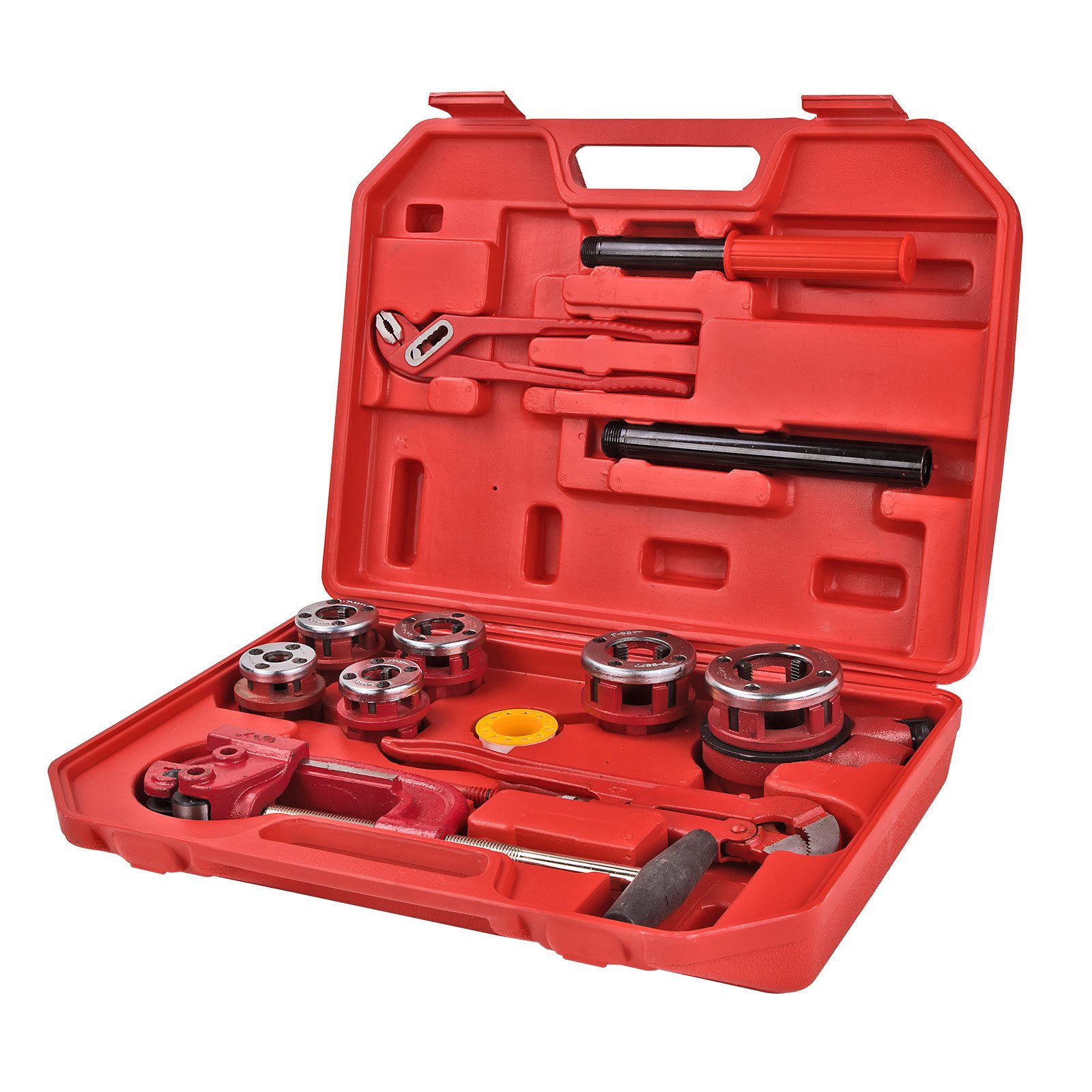 Perfekt für Heimwerker und Profis! Die beiden Gewindeschneider im Set machen Gewindeschneiden zum Kinderspiel. Mit der Größe 1/8-27 NPS und Rechtsgewinde sind sie ideal für Durchgangsbohrungen und blinde Löcher. Aus robustem HSS 6542 Stahl gefertigt, halten sie auch bei intensiver Nutzung lange. Die gerade Nut sorgt für optimalen Spanabtransport - so wird's wirklich sauber! \\n\\nEgal ob du mit Eisenblech, Kupfer, Edelstahl oder Legierungen arbeitest: Diese Schneider meistern die meisten Metalle. Wichtig: Immer schön Schneidöl verwenden, dann werden die Gewinde super glatt und die Werkzeuge halten ewig. \\n\\nTechnische Daten im Überblick: \\n- Gewindegröße: 1/8-27 NPS (Rechts) \\n- Gewindelänge: 27mm \\n- Gesamtlänge: 80mm \\n- Vierkantschaft: 8mm \\n- Genauigkeitsklasse: H2 \\n\\nFür beste Ergebnisse an der Bohrpresse oder CNC-Maschine verwenden. Die empfohlenen Geschwindigkeiten: Normalstahl 6-15 m/min, Edelstahl langsamer mit 2-7 m/min. Und nicht vergessen - erst mit Spiralbohrer vorarbeiten, dann im 90-Grad-Winkel schneiden. Die Gewindetiefe sollte etwa das 1,5-fache des Durchmessers nicht überschreiten. So klappt's garantiert!