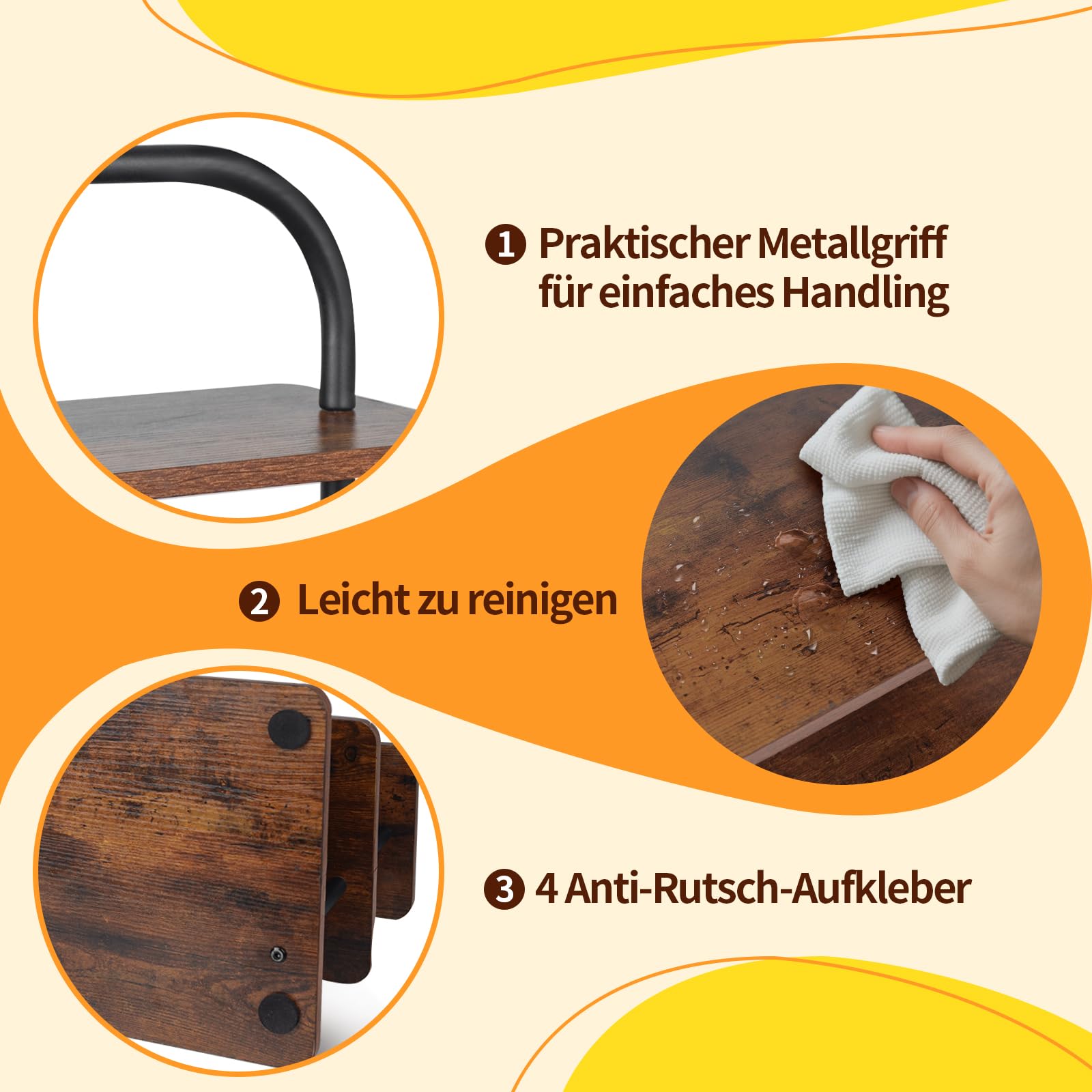 Plant ihr eine große Feier? Dieser 3-stöckige Tortenständer ist der absolute Hingucker! Mit quadratischen Etagen (40x30cm) bietet er Platz für bis zu 50 Cupcakes oder eine große Torte. Die Abstände zwischen den Etagen (15cm) sind perfekt bemessen - alles ist gut sichtbar und sieht super aus. Aus stabilen Metallrohren (2cm Durchmesser) und 1,2cm dicker MDF-Platte gebaut, wackelt hier nichts! Die 4 rutschfesten Füße sorgen für sicheren Stand. Im braunen Holzdesign passt der Ständer zu jedem Anlass - ob Hochzeit, Geburtstag oder Babyparty. Montage? Ganz easy - in nur 15 Minuten mit der beiliegenden Anleitung zusammengebaut. Und nach der Feier einfach mit einem feuchten Tuch abwischen - schon ist er wieder sauber. Der praktische Griff macht das Tragen zum Kinderspiel. Egal ob für Profi-Bäcker oder Hobby-Konditoren - dieser Ständer macht jede Feier noch schöner!