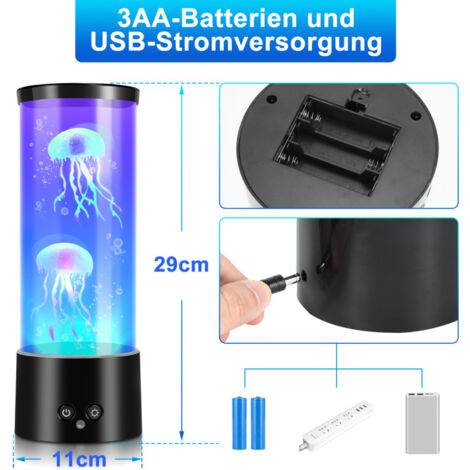 Entspannung pur mit dieser faszinierenden Quallenlampe! Die AONESY LED-Lampe bringt die magische Unterwasserwelt direkt in dein Zimmer. Mit nem verbesserten Design und realistischen Quallen, die sich sanft im Wasser bewegen. 17 verschiedene Farben und 6-stufige Verlaufslicht-Effekte sorgen für ne mega Stimmung. Per USB oder Batterien betreibbar (Batterien nicht dabei). Inklusive Fernbedienung zum bequemen Steuern. Perfekt zum Abschalten nach nem stressigen Tag - die beruhigende Bewegung der Quallen und die sanften Farbwechsel helfen beim Relaxen. Super als Geschenk für Jung und Alt, fürs Schlafzimmer, Wohnzimmer oder Büro. Lieferumfang: Lampe, USB-Kabel, 2 Quallen, Löffel, Fernbedienung und Anleitung. Hol dir dein persönliches Meer-Erlebnis für zu Hause!