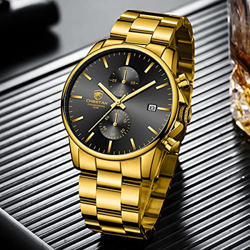 GOLDEN HOUR Herrenuhr Quarz | Versilbert Wasserdicht | Chronograph Edelstahl Metall