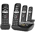 Telefonieren war noch so komfortabel! Dieses Gigaset A695A Quattro Set bringt modernste Technik in dein Zuhause. Mit vier schnurlosen Mobilteilen hast du in jedem Raum ein Telefon griffbereit - ob in der Küche, im Schlafzimmer oder im Home Office. Das große, kontrastreiche Display sorgt für perfekte Lesbarkeit, auch für ältere Menschen. Der integrierte Anrufbeantworter zeichnet bis zu 20 Minuten Gespräche auf, damit du keinen wichtigen Anruf verpasst. Mit Anrufschutz für 32 Nummern bleibst du von unerwünschten Anrufern verschont. Die ECO DECT Technologie reduziert den Stromverbrauch und die Sendeleistung passt sich automatisch an. Super Akkulaufzeit - bis zu 180 Stunden im Standby! Einfache Installation - einfach an die Telefondose anschließen und lostelefonieren. Made in Germany Qualität, die man hört und spürt. Perfekt für Familien oder Home Office Nutzer, die Wert auf zuverlässige Kommunikation legen.