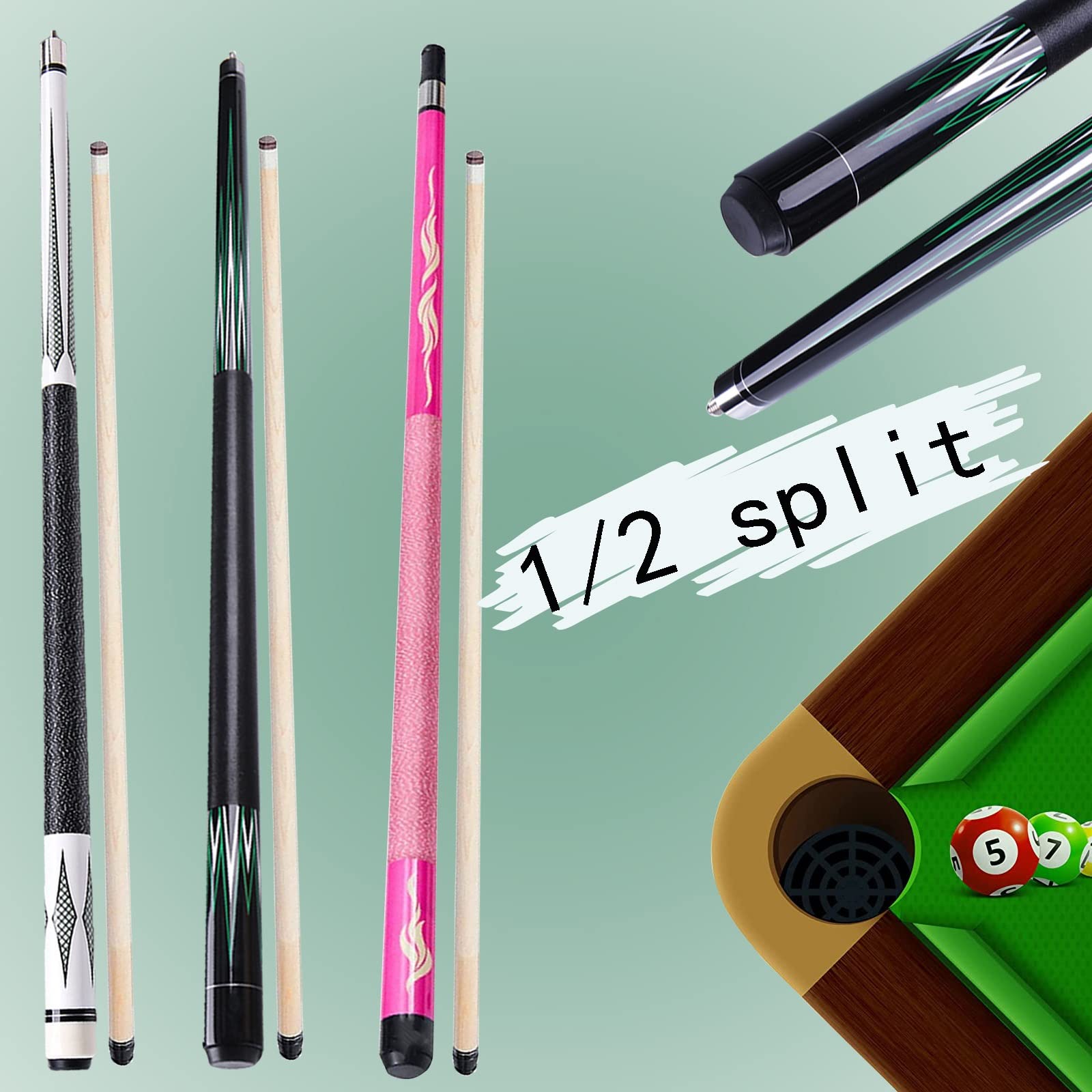 Für alle Pool- und Billard-Fans: Dieses hochwertige Queue-Set bringt dein Spiel auf das nächste Level! Hergestellt aus kanadischem Ahornholz, ist das Queue 145cm lang und wiegt 540g (20 Unzen) - die perfekte Balance für präzise Schüsse. Die professionelle 12,5mm Lederspitze gibt dir hervorragende Kontrolle über den Spielball und die strapazierfähige Faserzwinge sorgt für Langlebigkeit. Das coole UV-Druck-Design macht jedes Queue zu einem Unikat. Im Lieferumfang ist ein praktisches Hartschalenetui enthalten - so kannst du dein Queue sicher transportieren und aufbewahren. Ob für den Spieleabend mit Freunden, für die Kneipe um die Ecke oder für ernsthafte Turniere - mit diesem Queue machst du garantiert eine gute Figur am Billardtisch. Einfach auspacken und losspielen!