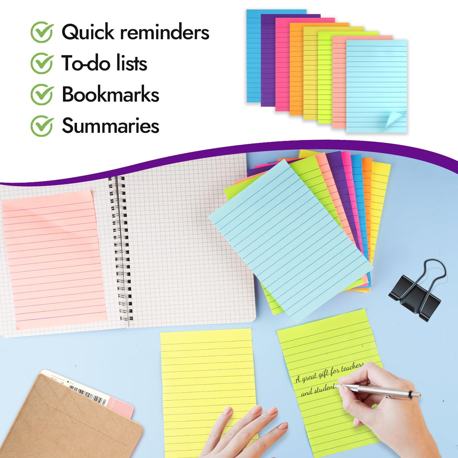 Ob im Büro, in der Schule oder zu Hause - diese Haftnotizen machen einfach Spaß und motivieren zum Organisieren. Die bunten Farben passen super zu anderen Büroartikeln und sorgen für eine fröhliche Arbeitsatmosphäre.