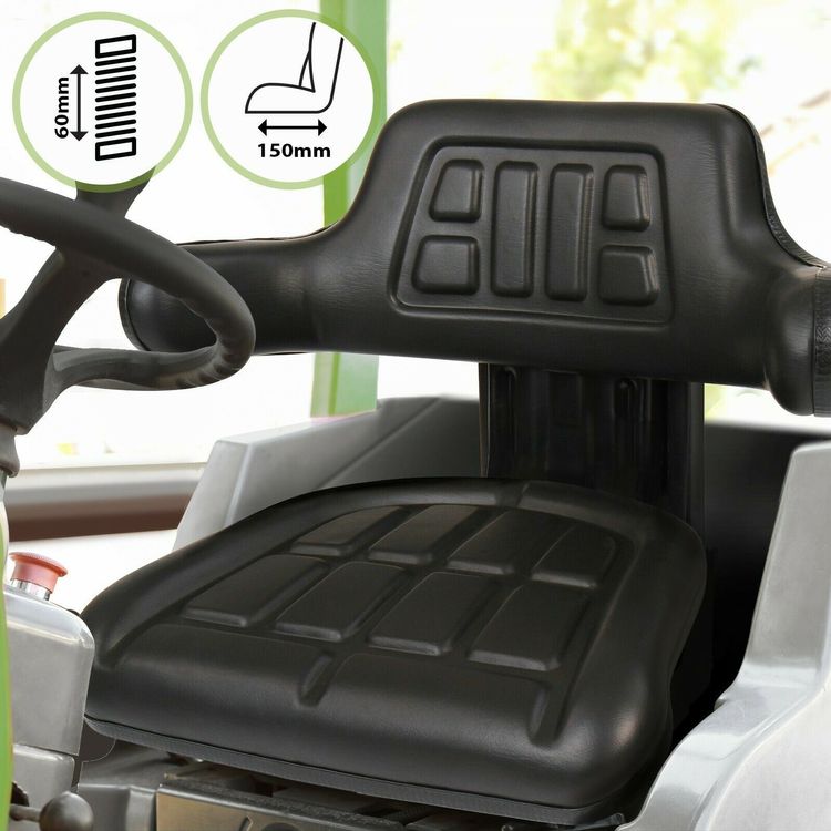Endlich bequem auf dem Traktor sitzen! Dieses Sitzpolster mit Rückenlehne und Armlehne macht lange Arbeitstage zum Vergnügen. Aus premium Kunstleder gefertigt - extrem robust, langlebig und 100% wasserdicht! Die Polsterung mit Hochdichte-Schaumstoff bietet maximalen Komfort und ergonomische Unterstützung. Mit M8 Gewinde zur Befestigung (Schrauben nicht im Lieferumfang). Passt universell auf viele Traktorsitze am Markt. In verschiedenen Farben erhältlich - such dir deine Lieblingsfarbe aus! Wichtig: Vorher die Befestigungsmaße deines Sitzes prüfen für perfekte Passform. Ob bei der Ernte, auf dem Feld oder im Wald - mit diesem Polster machst du jede Fahrt zur Wohlfühl-Tour!