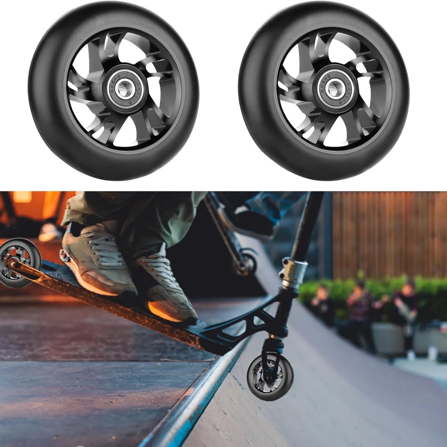 Alter, diese Scooter-Räder sind der absolute Hammer! Die 110mm großen Räder leuchten in bunten Farben und blinken wie verrückt - perfekt für Nachtfahrten oder um einfach aufzufallen. Und das ist nicht nur Show: Die ABEC-7 Kugellager sorgen für mega-smoothies Fahren und halten auch bei Stunts richtig was aus. Aus hochwertigem PU-Material gefertigt, sind die Räeder super verschleißfest und geben dir auf jedem Untergrund guten Grip. Jedes Rad wiegt etwa 150g, und du kriegst ein komplettes Set mit 2 Rädern. Die Installation ist kinderleicht - kein Spezialwerkzeug nötig! Einfach die alten Räder ab und die neuen drauf. Ob für deinen Stunt-Scooter, Kickroller oder Kinderfahrrad - diese Teile machen einfach Laune. Die LED-Beleuchtung braucht keine extra Batterien, sie läuft durch die Bewegung. Je schneller du fährst, desto cooler leuchten die Räder! Sicherheit und Spaß in einem. In pink, rot, blau, grün oder gelb erhältlich - such dir deine Lieblingsfarbe aus! Perfekt als Upgrade für deinen alten Roller oder als Ersatz bei abgefahrenen Rädern. Damit wirst du zum Star auf der Skatebahn!