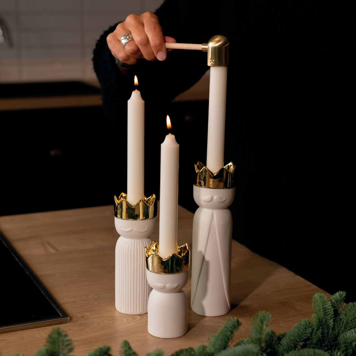 Edle Weihnachtsdekoration von Räder Design! Das Königslicht Balthasar aus mattem Porzellan mit goldenem Decal verbreitet festlichen Glanz. Perfekt für Stabkerzen und Teil einer dreiteiligen Serie (mit Caspar und Melchior). Schafft eine besinnliche Weihnachtsatmosphäre und ist ein wunderbares Geschenk für unter den Tannenbaum. Hochwertige Verarbeitung für jahrelange Freude. Macht jedes Zuhause weihnachtlich gemütlich und ist ein echter Eyecatcher in deiner Weihnachtsdekoration!