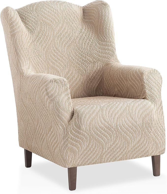 Schluss mit langweiligen Sesseln! Diese elastischen Bezüge verpassen deinem Ohrensessel sofort einen frischen Look. Aus 85% Polyester und 15% Spandex passen sie sich perfekt an jede Sesselform an - einfach drüberziehen und schon sieht's aus wie neu!\n\nDie süßen Rüschen geben dem Ganzen einen gemütlichen, vintage Touch. Und praktisch sind sie obendrein: Perfekter Schutz gegen Flecken, Haare von Haustieren oder die ein oder andere Wein-Verschüttung.\n\nDetails die überzeugen:\n• Anti-Rutsch-Bänder unten für perfekten Halt\n• Maße Sessel: Länge 78-85cm, Höhe 70-80cm\n• Optional mit passendem Fußhocker-Bezug\n• Maschinenwaschbar bis 30°C - super pflegeleicht\n• Auch für Büro, Terrasse oder Gästezimmer geeignet\n\nEinfach mal was Neues ausprobieren! Ohne teure Neuanschaffung gibts sofort frischen Wohnflair.
