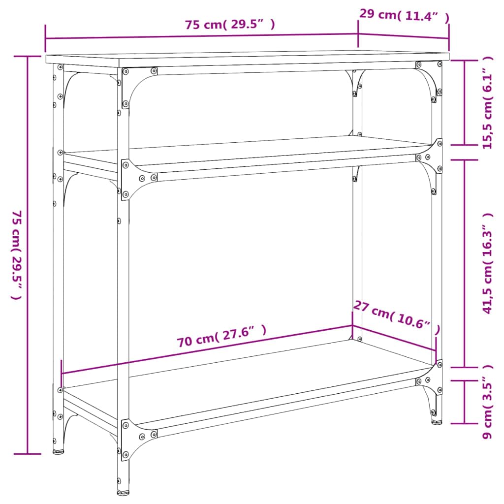 Stylischer Konsolentisch für deinen Flur oder Wohnzimmer! Maße: 100x32x75 cm in schicker Räuchereiche-Optik. Aus robustem Holzwerkstoff und Metallgestell. Mehrere Ablagen bieten viel Stauraum für Bücher, Deko und Kleinkram. Verstellbare Beine für stabilen Stand auch auf unebenem Boden. Tragkraft: 20 kg pro Boden. Einfach montieren und sofort nutzen! Wichtig: Mitgelieferte Wandhalterung verwenden, damit nichts umkippt. Ein echter Hingucker der praktisch ist!