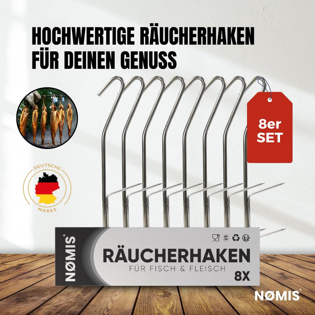 Professionelle Räucherhaken für deine nächste Räucher-Session! Im Set 10 Stück aus hochlegiertem Edelstahl, je 20cm lang und 2mm stark. Super stabil und halten bis zu 3kg aus. Perfekt für Forellen, Lachs, Dorsch, Zander oder Karpfen. Die Haken haben einen 15mm großen Bogen und 6mm Öse - ideal zum Aufhängen im Räucherofen. Rostfrei und lebensmittelecht, also völlig unbedenklich. Einfach zu handhaben und wiederverwendbar. Damit wird dein geräucherter Fisch zum echten Genuss-Erlebnis!