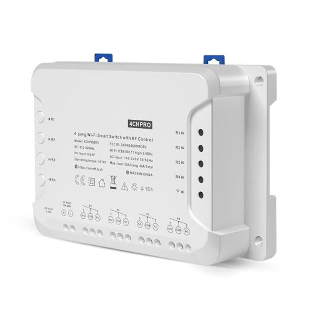 Mach dein Zuhause smart! Der 4CH PRO R3 WiFi Switch lässt sich bequem per App steuern - egal wo du bist. Perfekt für Lichtsteuerung, Rollläden oder Elektrogeräte. Drei Arbeitsmodi: Selbstsichernd, ineinandergreifend und Zoll-Modus. Steuere bis zu 4 Geräte unabhängig voneinander. Einfache Installation - montiert auf Schienen für professionelle Anwendung. Kompatibel mit Smart Home Systemen und Sprachsteuerung. Zeitplan-Funktion für automatisches Ein- und Ausschalten. Perfekt für Flurlicht, das sich nach einer bestimmten Zeit automatisch abschaltet. Schwer entflammbares PC-Gehäuse für maximale Sicherheit. Ideal für moderne Hausautomation - steuere deine Geräte auch von unterwegs. Einfache Einrichtung über die App - auch für Technik-Einsteiger geeignet. Spare Energie und erhöhe den Komfort in deinem Zuhause. Perfekte Lösung für alle, die ihr Zuhause smarter machen wollen. Einfach installieren und sofort lossteuern!