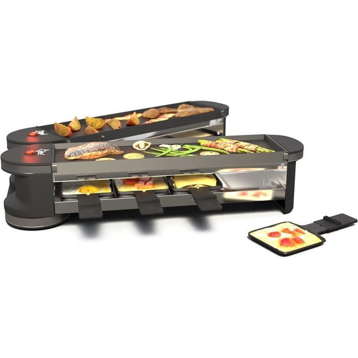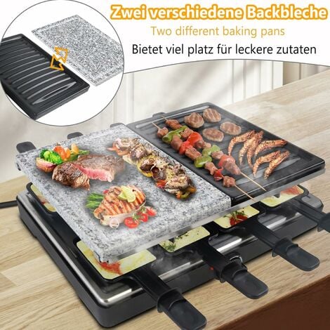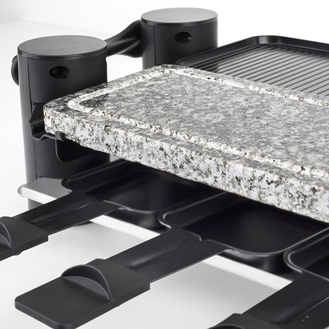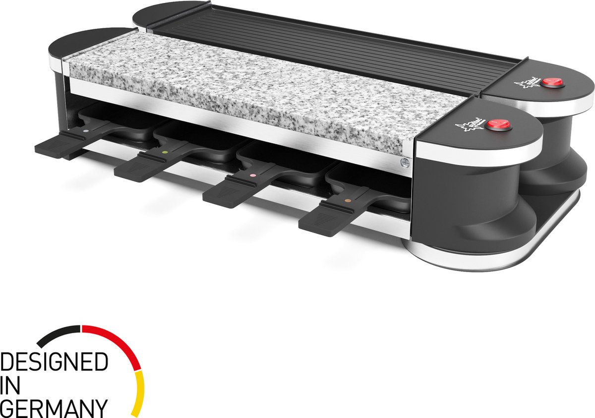 Raclette-Spaß für die ganze Familie! Der SUNTEC RAC-9097 bietet Platz für bis zu 8 Personen und macht jede Party zum Erfolg. Mit 8 antihaftbeschichteten Pfännchen, zwei Grillflächen und einer extra Granit-Steinplatte für gesundes Grillen ohne Fett. 900 Watt Leistung sorgen für schnelles Aufheizen, das 2 Meter lange Kabel gibt dir genug Bewegungsfreiheit. Alle abnehmbaren Teile sind spülmaschinenfest - nach dem Fest ist das Aufräumen ein Kinderspiel. Ob Gemüse, Fleisch oder Fisch, hier wird alles perfekt zubereitet. Einfach einschalten und losgrillen!