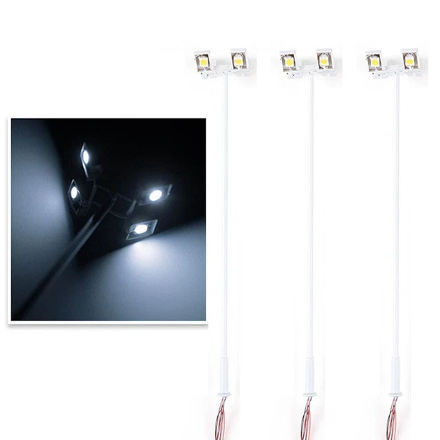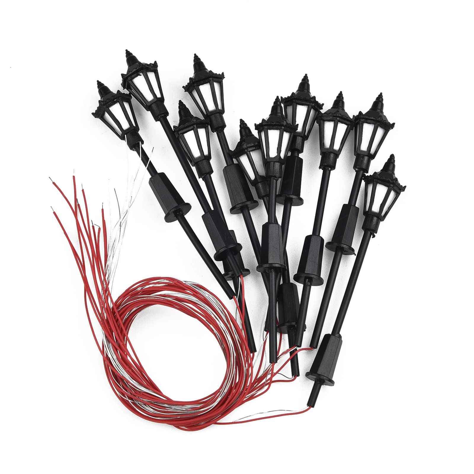 Verwandle deine Modelleisenbahn in eine magische Miniaturwelt! Diese 50 LED-Straßenlaternen bringen Leben und Realismus in deine Anlage. Stell dir vor: Deine kleine Stadt erstrahlt in warmem Licht - jede Straße, jeder Platz perfekt beleuchtet! Mit einer Höhe von 65-70mm (verstellbar) und im Maßstab 1:50-1:100 passen diese Laternen perfekt für H0 und TT Anlagen. Jede Laterne hat ein 25cm langes Kabel, sodass du sie flexibel platzieren kannst. Die 3V Spannung und 20mA Stromaufnahme machen sie energieeffizient und sicher im Betrieb. Aus hochwertigem Kunststoff gefertigt, sind die Laternen langlebig und detailgenau. Perfekt nicht nur für Modelleisenbahnen, sondern auch für Puppenhäuser, Dioramen, Märchengärten oder jede andere Miniaturlandschaft. Die einfache Installation macht Spaß und die beleuchtete Szenerie wird zum absoluten Hingucker. Ein faszinierendes Projekt für Modellbau-Fans jeden Alters - ob für erfahrene Bastler oder Einsteiger. Besonders für Kinder ist es ein magisches Erlebnis, wenn ihre kleine Welt zum Leben erweckt wird. Einfach verkabeln, positionieren und sich an der illuminierten Miniaturstadt erfreuen!