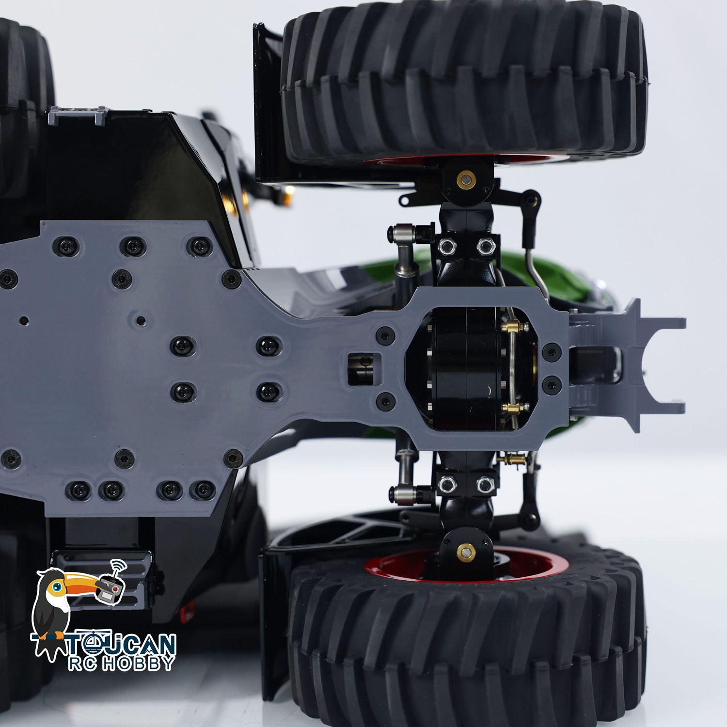 Ein Traktor-Fan? Dann wird dich dieser TOUCAN RC Traktor begeistern! Im Maßstab 1/16 mit super detailgetreuem Metall-Chassis (39x21,5x22 cm). Komplett startbereit (RTR) mit ST8 Fernbedienung - einfach Akku rein und losfahren! Mit Allradantrieb und Differential-Sperre meistert er jedes Gelände. Der Bürstenmotor sorgt für zuverlässige Power, und das Federungssystem an der Vorderachse macht die Fahrt besonders stabil. Besonders cool: Echte Sound-Effekte und Licht! Der hintere Haken ist sogar mit Hebesystem ausgestattet - kannst also Anhänger ziehen oder Sachen anheben. Die hochwertigen Gummireifen geben perfekten Grip. Wiegt stolze 4,7 kg - fühlt sich richtig wertig an. Perfekt für drinnen und draußen, für große und kleine Traktor-Fans. Einfach auspacken und sofort loslegen - der Spaß ist garantiert!