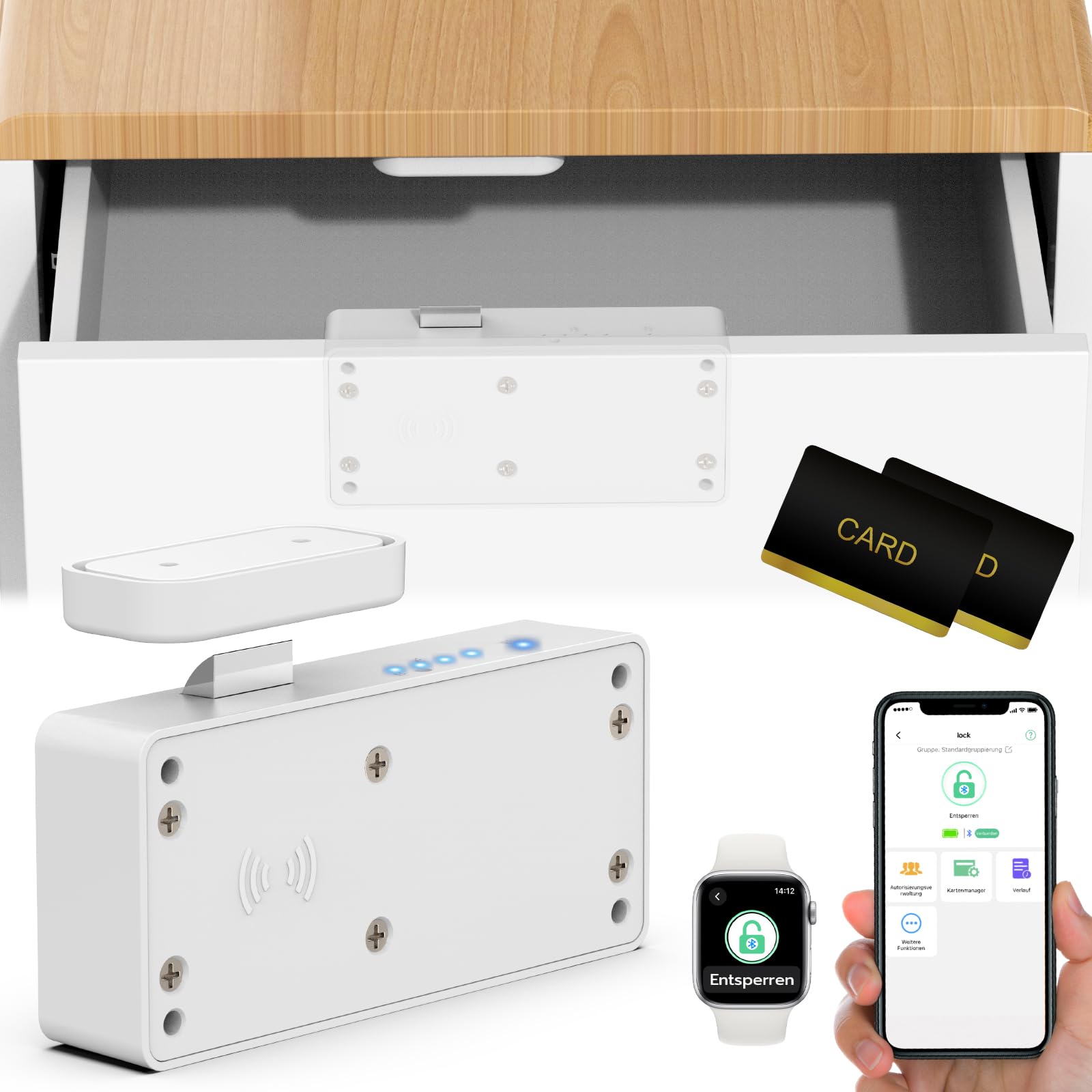 Schluss mit neugierigen Kinderhänden! Dieses clevere RFID-Schrankschloss sorgt für Sicherheit, ohne dass du bohren musst. Einfach mit den mitgelieferten Schrauben befestigen - deine Möbel bleiben unversehrt. Das Schloss wird mit einer Karte und einem Schlüsselanhänger geliefert, sodass du es bequem entriegeln kannst. Perfekt für Schränke, Schubladen, Aktenschränke - überall, wo du Medikamente, wichtige Dokumente oder Wertgegenstände vor Kindern sichern willst. Das Schloss misst 8,6x6,3x2,8cm und wird mit 2 AA-Batterien betrieben (nicht im Lieferumfang). Aus robustem ABS-Material gebaut, hält es lange und die Kupfer-Induktionsspule sorgt für zuverlässige Funktion. Mit Markierungsaufklebern kannst du sogar notieren, was wo gesichert ist. Einfach zu installieren, einfach zu bedienen - die perfekte Lösung für mehr Sicherheit in Haushalt mit Kindern!