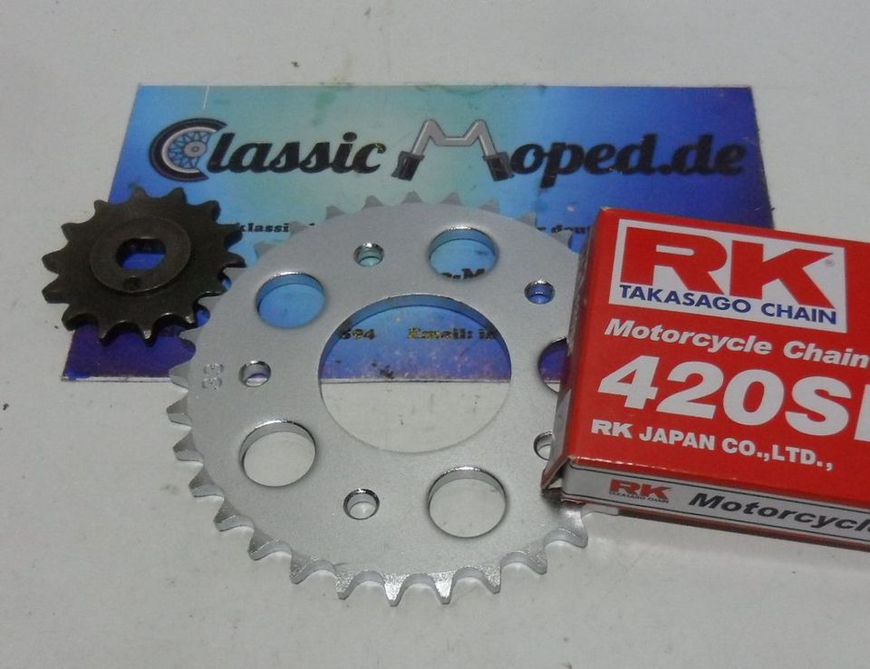 • RIDE AND CUSTOM Kettensatz Für Sachs Madass 125 - 16x46 Stahl Zahnkranz