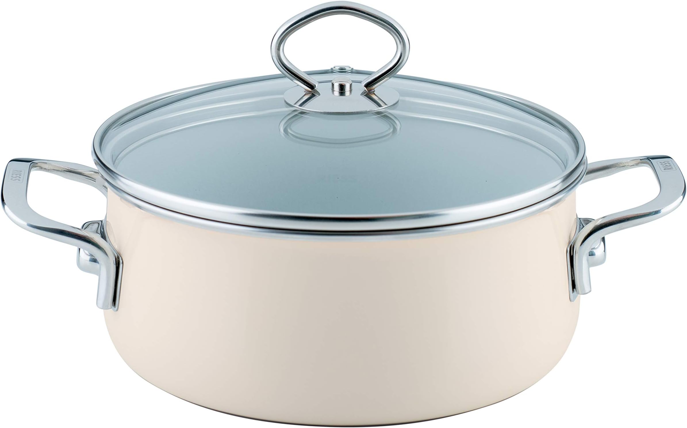 Koch-Enthusiasten, dieser RIESS Fleischtopf ist ein echter Klassiker! Seit 1550 steht die Marke für Qualität - und das merkt man.\n\n6,5 Liter Fassungsvermögen - perfekt für Sonntagsbraten, Eintöpfe oder Suppen für die ganze Familie. Durchmesser 24cm, Höhe 23,5cm.\n\nAus hochwertiger Emaille - komplett schadstofffrei und super einfach zu reinigen. Rostfrei, kratzfest und hygienisch.\n\nInduktionsgeeignet - heizt schnell und gleichmäßig auf. Der Glasdeckel mit Dampfaustritt sorgt für perfekte Ergebnisse.\n\nIn BLACK MAGIC Farbe - sieht nicht nur edel aus, sondern ist auch extrem stabil. Made in Austria - Qualität die man schmeckt!\n\nEnergiesparendes Kochen dank guter Wärmeverteilung. Ein Topf für Generationen - nachhaltig und langlebig.\n\nEinfach reinigen, vielseitig verwendbar und ein echter Blickfang in jeder Küche. Dein neuer Lieblingstopf!