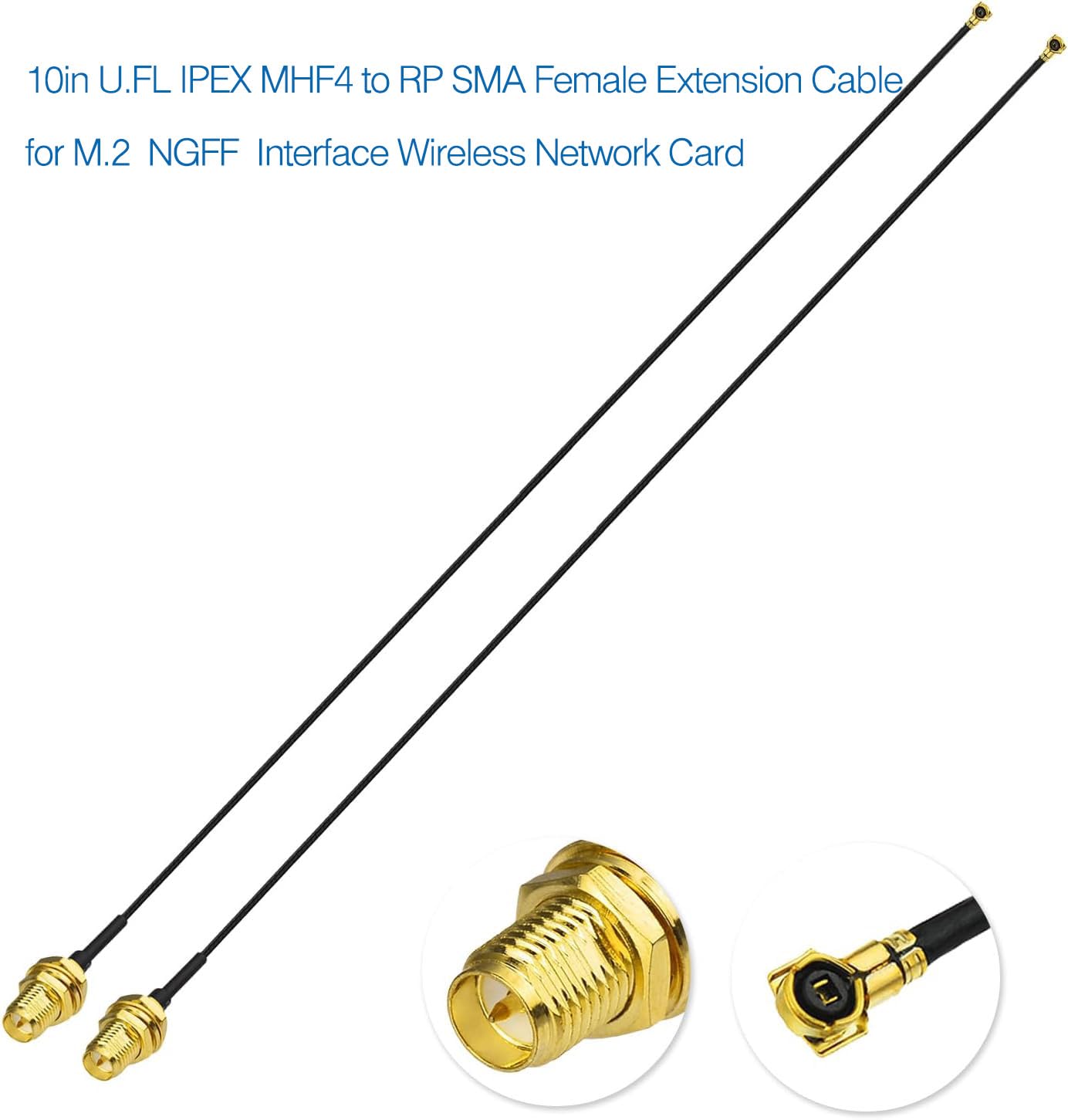 Kompatibel mit Intel AX200NGW, 8265AC, 7265AC und anderen M.2 NGFF Wireless-Karten mit U.FL Anschlüssen. Inklusive 2x 25cm Verlängerungskabel (U.FL auf RP-SMA) für flexible Montage.