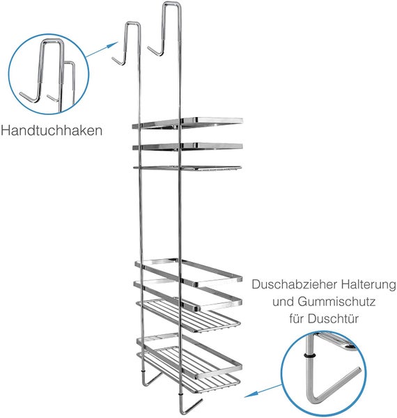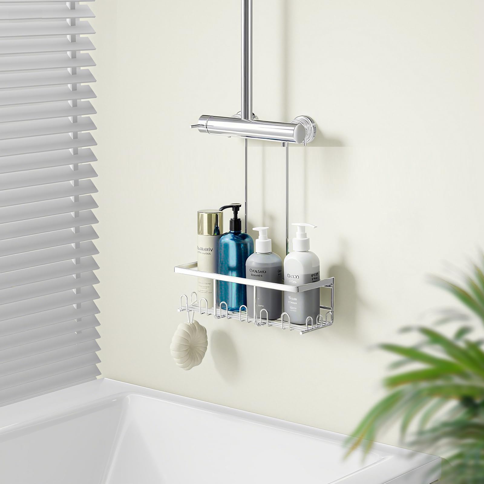 Mann, diese Duschablage ist genial! Komplett ohne Bohren - einfach über die Dusche hängen und fertig. Aus robustem Edelstahl, 28x12 cm groß mit 12 praktischen Haken. Perfekt für Shampoo, Duschgel, Kämme, Rasierer und alles was du in der Dusche brauchst. Die abgerundeten Haken schonen deine Armaturen. Das offene Design unten sorgt für schnelle Entwässerung - alles bleibt trocken und hygienisch. Bringt sofort Ordnung in deine Dusche. Einfach zu installieren, hält bombenfest. Endlich alles griffbereit beim Duschen!