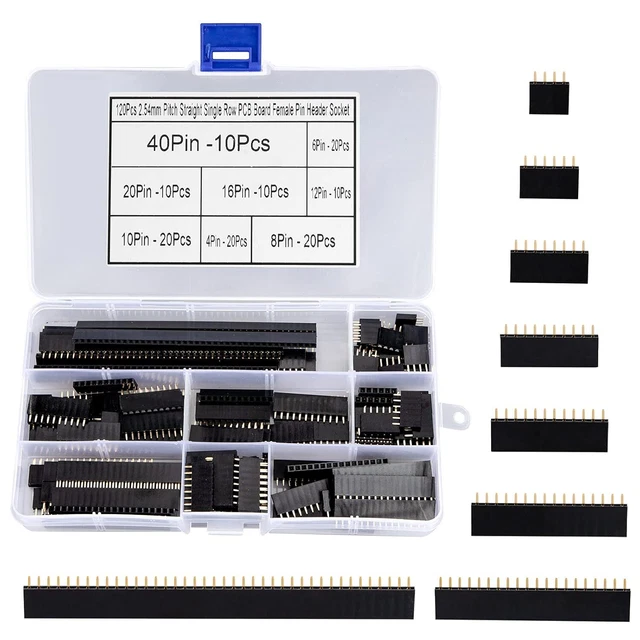 Perfektes Set für alle Elektronik-Projekte! Enthält 60 Stück Stiftleisten in 8 verschiedenen Größen: 4, 6, 8, 10, 12, 16, 20 und 40 Pin. Mit 2,54mm Standardabstand ideal für Arduino, Raspberry Pi und Steckbretter. Aus hochwertigem Kunststoff und Messing gefertigt - langlebig und zuverlässig. Einfach zu verlöten und in der praktischen Aufbewahrungsbox ordentlich verstaut. Mach deine Elektronik-Projekte sauber und professionell!