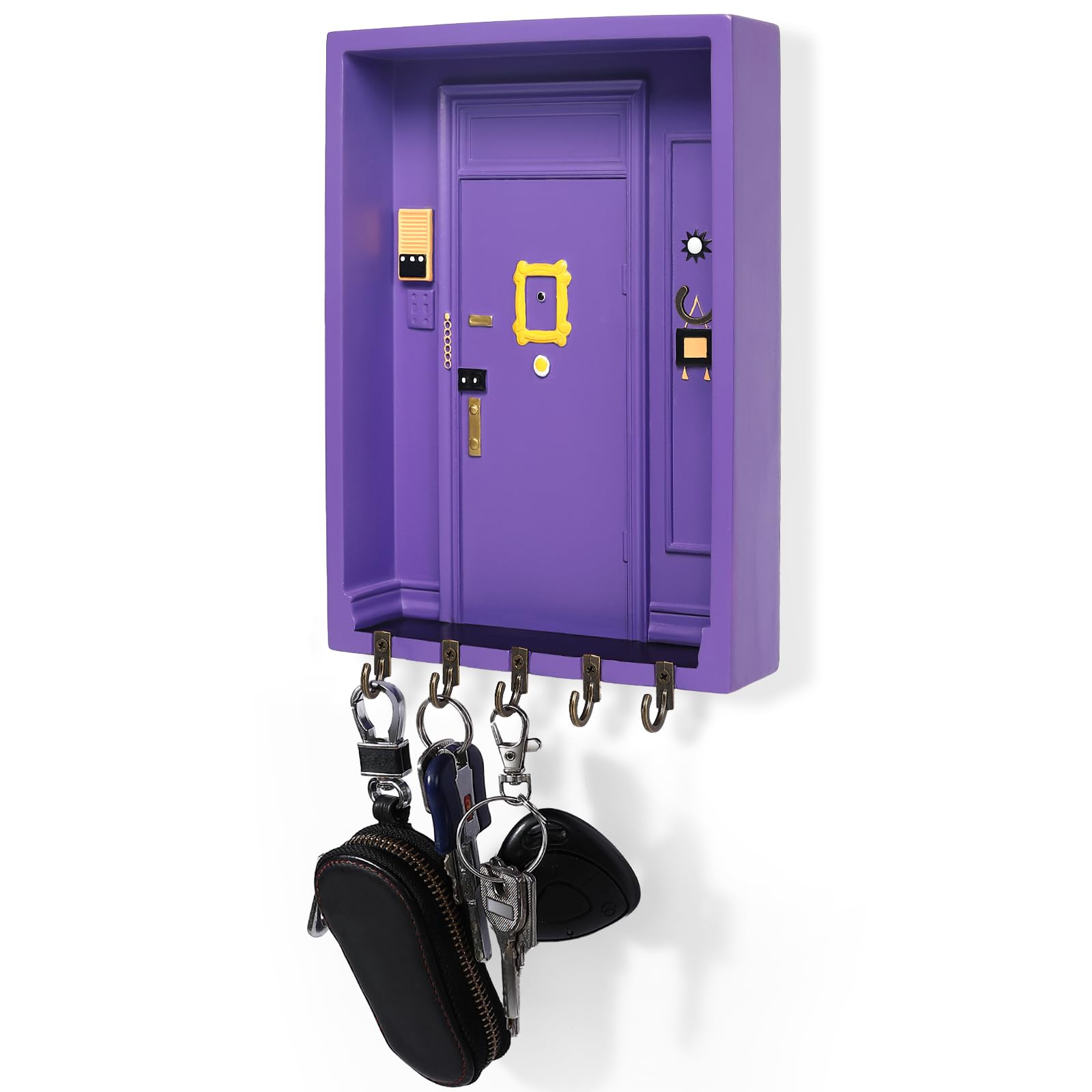 How you doin'? Dieses mega-coole Friends Schlüsselbrett bringt den Kult direkt in deine Wohnung! Die detailgetreue Nachbildung von Monica und Rachels berühmter lila Tür ist nicht nur ein echter Hingucker, sondern auch super praktisch. Mit 6 stabilen Metallhaken hast du Platz für all deine Schlüssel, Haustierleinen oder leichte Jacken. Das kleine Regal darüber ist perfekt für Sonnenbrille, Geldbörse oder andere Kleinigkeiten. Aus hochwertigem MDF und Harz gefertigt, mit wasserbasierter Farbe für maximale Sicherheit. Die Maße von 20,3x5x25,5cm passen perfekt in Flur, Foyer oder Büro. Selbst die kleinen Details wie der Flachlautsprecher, Kettenschloss und Schalter sind originalgetreu nachgebildet - ein absolutes Must-have für jeden Friends-Fan! Einfach an die Wand hängen und deinen Raum mit einer Prise TV-Nostalgie aufwerten. Das perfekte Geschenk für Geburtstage, Weihnachten oder einfach so - bring deine Freunde damit definitiv zum Strahlen!