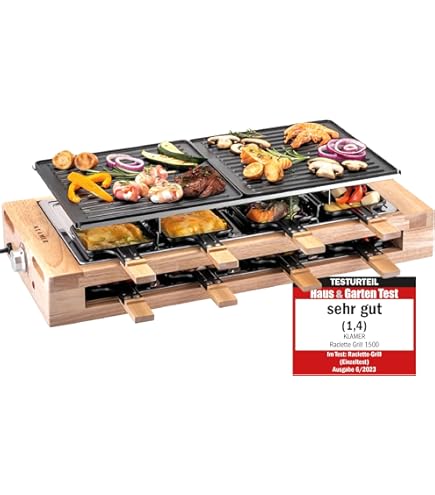 Der ultimative Partyspaß für bis zu 4 Personen! Dieser Stöckli PizzaGrill kombiniert Raclette, Grillen und Pizza-Machen in einem Gerät. Mit separaten Reglern für Ober- und Unterhitze könnt ihr die Temperatur perfekt anpassen - ob für knusprige Mini-Pizzas, schmelzendes Raclette oder gegrilltes Gemüse. Im Lieferumfang sind 4 antihaftbeschichtete Pfännchen, 4 Spachtel, ein Teigausstecher und eine Wende-Grillplatte enthalten - also alles, was man für ein gelungenes Essen braucht! Das praktische Parkdeck sorgt für Ordnung auf dem Tisch. Ob gemütlicher Abend mit Freunden, Familienfeier oder Date-Night - mit diesem Vielseitigkeits-Talent wird jedes Essen zum Erlebnis! Einfach anschalten, Zutaten vorbereiten und gemeinsam kochen und genießen - damit werden eure Partys garantiert unvergesslich!