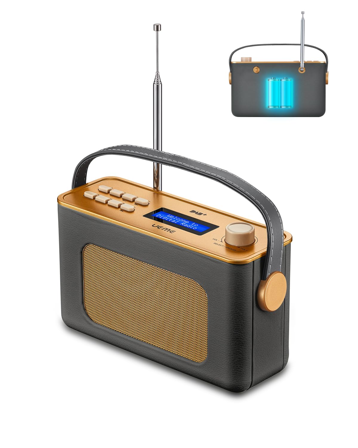 Alter, dieses Retro-Radio ist ja mal der Hammer! Sieht aus wie aus Omas Zeiten, kann aber alles, was man heute braucht: DAB+, FM, Bluetooth-Lautsprecher und sogar Radiowecker mit Schlummerfunktion. Der 2600mAh Akku hält bis zu 10 Stunden durch, also perfekt für Garten, Küche oder unterwegs. Mit dem ausziehbaren Antenne kriegst du alle Sender rein - WDR2, NDR2, RockAntenne, was auch immer du hörst. Und das Kunstleder-Gehäuse fühlt sich nicht nur gut an, sondern sieht auch noch mega stylisch aus. Blaues Display, zwei Wecker, Kopfhöreranschluss... was will man mehr? Ach ja, USB-Kabel ist dabei, Netzteil musst du selber haben. Aber das hat ja eh jeder daheim!