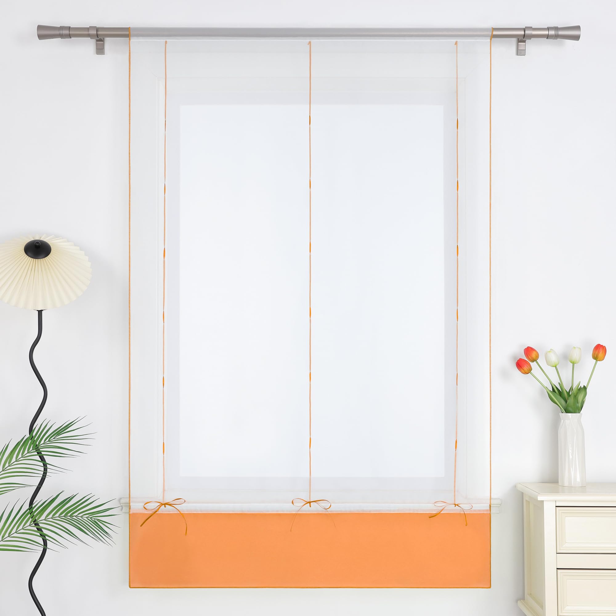 • Voile Raffrollo Mit Kontrastkanten - Tunnelzug Vorhang Weiß-Orange 45x140cm