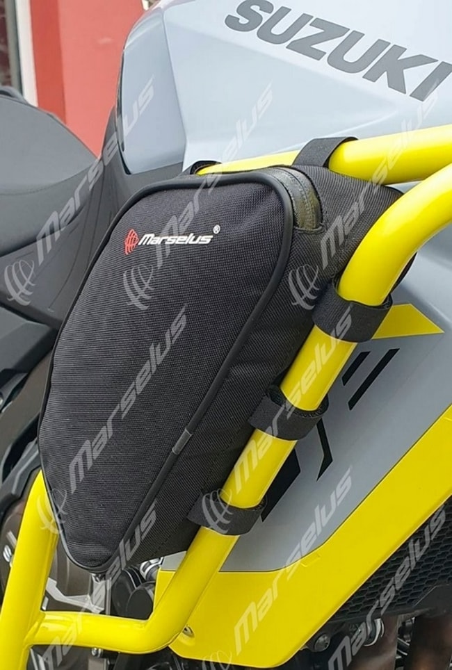 Die Tasche besteht aus robustem Nylongewebe und wiegt nur 300 Gramm. Sie lässt sich schnell am Rahmen befestigen und genauso schnell wieder abnehmen. Der weiche, rutschfeste Boden schützt deinen Motorradlack vor Kratzern.