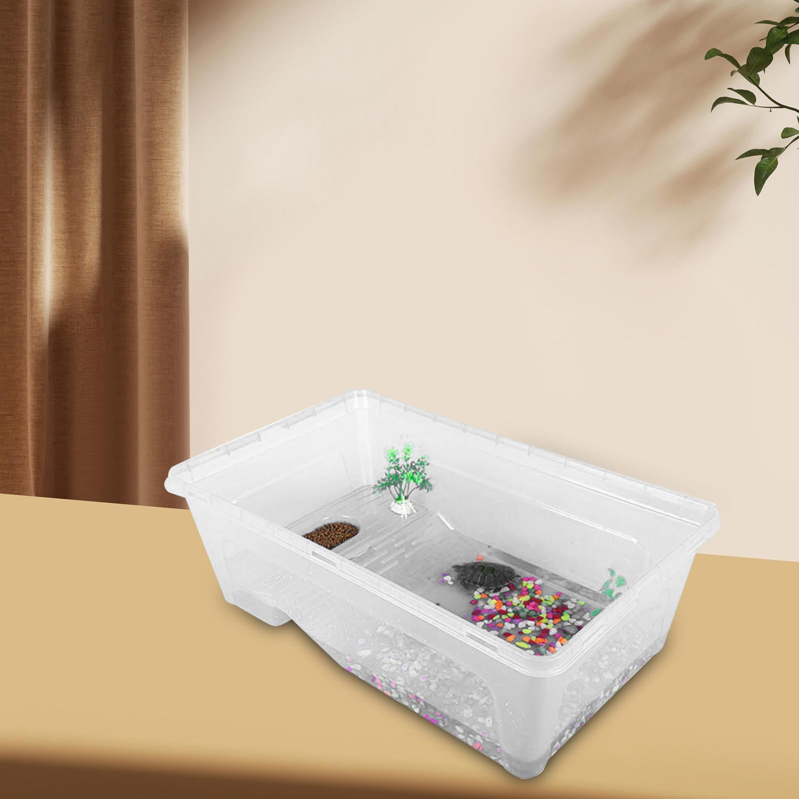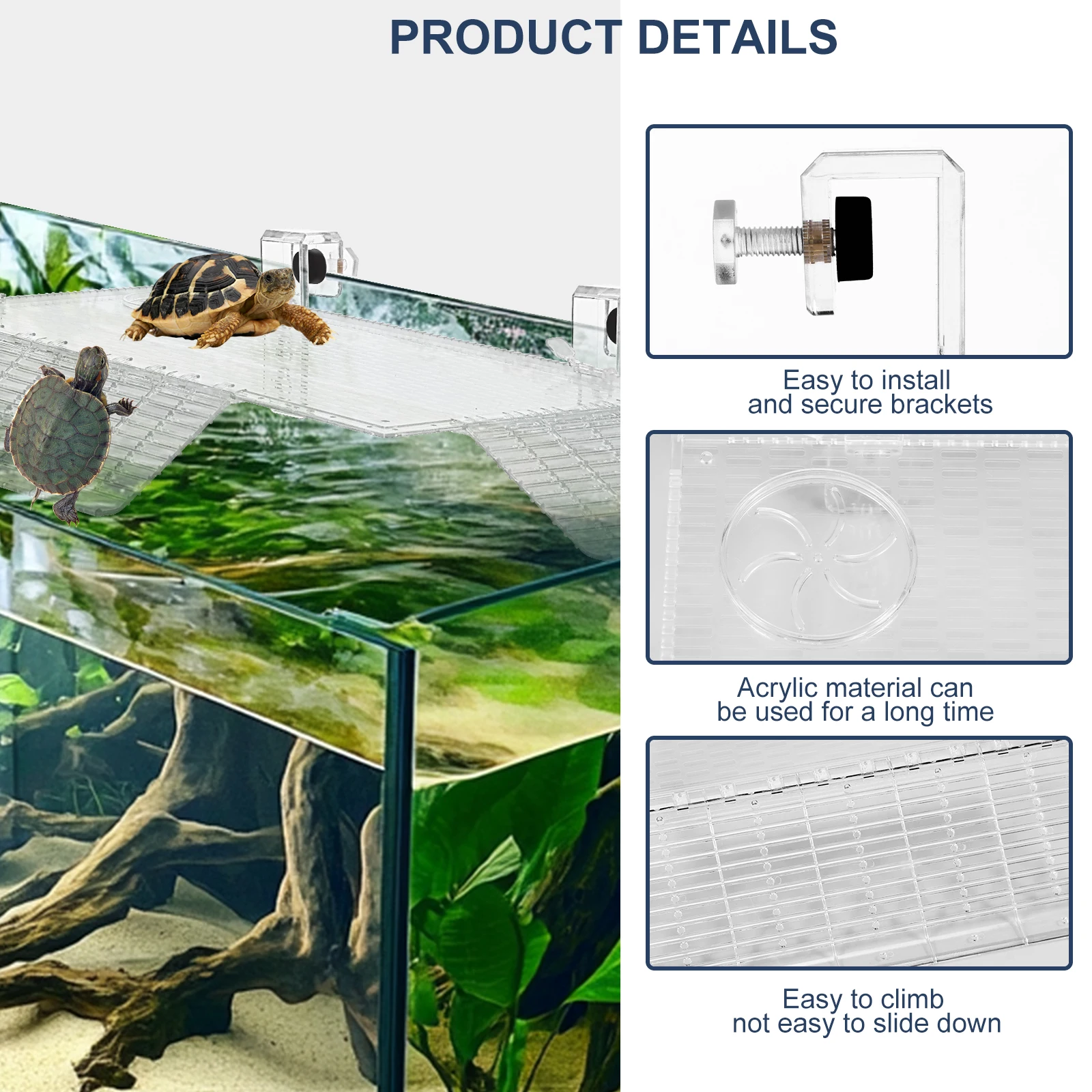 Deine Schildkröte wird diesen Sonnenplatz lieben! Diese clevere Über-Tank-Lösung gibt deinem Wasserfreund seinen eigenen gemütlichen Landbereich. Aus stabilem, transparentem Acryl gefertigt, ist sie nicht nur robust, sondern bietet auch freie Sicht auf dein Tier. Die spezielle Anti-Rutsch-Rampe macht es deiner Schildkröte super einfach, hoch und runter zu klettern - kein Rutschrisiko mehr! Das Beste: Da der Sonnenplatz oben auf dem Tank sitzt, bleibt der wertvolle Schwimmraum komplett erhalten. So kann deine Schildkröte nach Herzenslust plantschen und hat trotzdem ihren trockenen Rückzugsort fürs Sonnenbad unter der Wärmelampe. Perfekt für die Panzergesundheit durch richtige UVB-Bestrahlung! Es gibt zwei Größen zur Auswahl: Die kleinere misst etwa 20x14x14 cm, die größere 25x16x16 cm. Ideal nicht nur für Schildkröten, sondern auch für andere kleine Reptilien und Amphibien. Einfach auf den Tank setzen - und schon hat dein Liebling sein eigenes Luxus-Appartement!