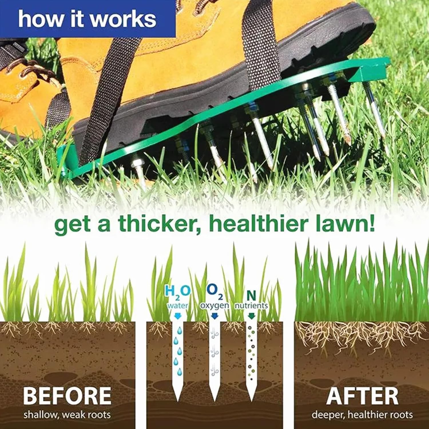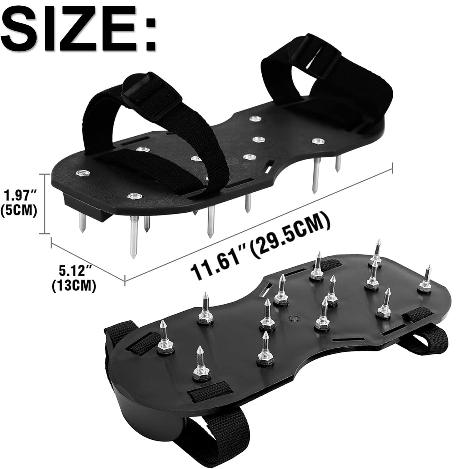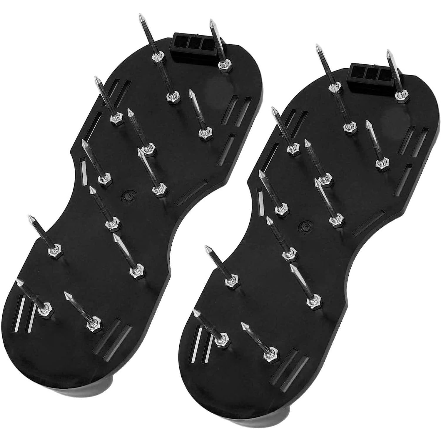 Hey du Hobby-Gärtner! Mit diesen Rasenlüfter-Schuhen wird dein Rasen wieder richtig schön. Einfach über deine normalen Schuhe ziehen, die 6 Metall-Schnallen festmachen und schon kannst du loslaufen. Die 55mm Spikes aus Metall lockern den Boden super auf - so kriegen deine Gräser wieder mehr Luft und Wasser. Aus robustem ABS-Material und mit 13 Spikes pro Schuh. Super praktisch: Einfach mit Wasser abspülen, um sie zu reinigen. Wichtig: Nicht barfuß tragen und vor dem ersten Einsatz in Ruhe an die Schuhe gewöhnen. Perfekt für Rasen, Gartenarbeit oder auch für Epoxidböden. So einfach war Rasenpflege noch nie!