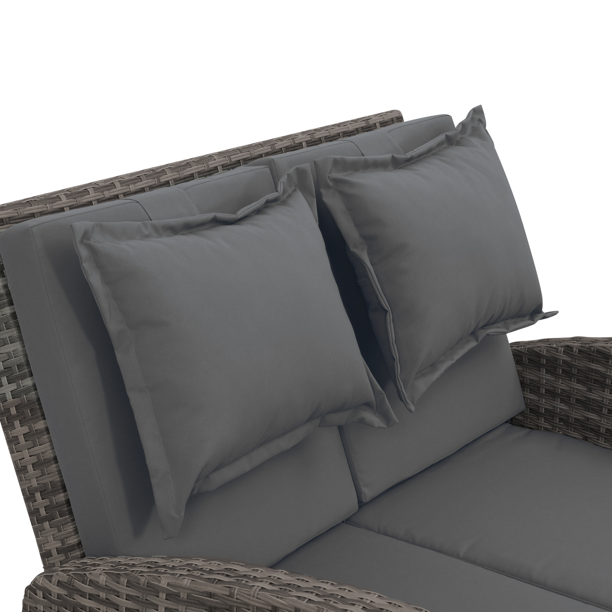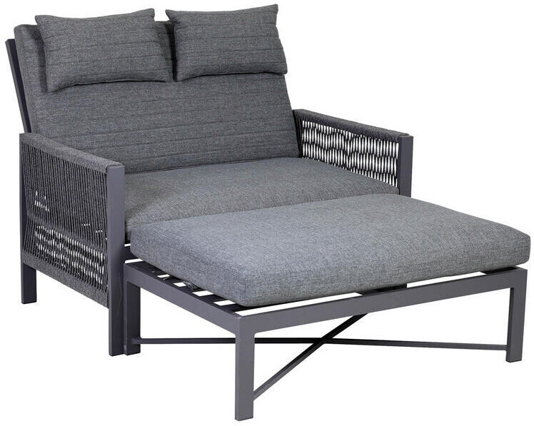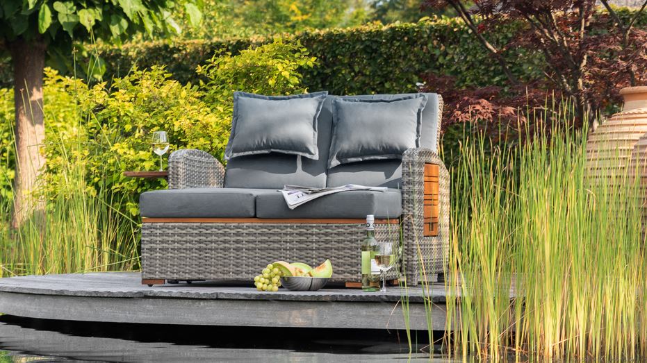 Wohnzimmer-Feeling im Garten! Diese greemotion Rattan-Lounge 'Bahia Tobago' ist das absolute Highlight für deine Terrasse oder den Garten. Nicht nur ein bequemes Sofa, sondern auch ein vollwertiges Gästebett - einfach die 5-fach verstellbare Rückenlehne flach stellen und schon hast du eine gemütliche Schlafgelegenheit für Übernachtungsgäste. Die grauen Polyrattan-Geflechte sind witterungsbeständig und pflegeleicht, die Tischchen aus zertifiziertem Akazienholz sehen nicht nur edel aus, sondern sind auch super praktisch. Im Lieferumfang sind alle Kissen enthalten - sowohl für die Sitzfläche als auch für den Hocker, der platzsparend unter dem Sofa verstaut werden kann. Maximaler Komfort für dich und deine Gäste, stylisches Design das sich perfekt in jede Outdoor-Einrichtung fügt, und eine robuste Verarbeitung die mehrere Jahre halten wird. Mit einer Belastbarkeit von 2x110 kg ist die Lounge auch für kräftigere Personen geeignet. Dein neuer Lieblingsplatz im Freien!