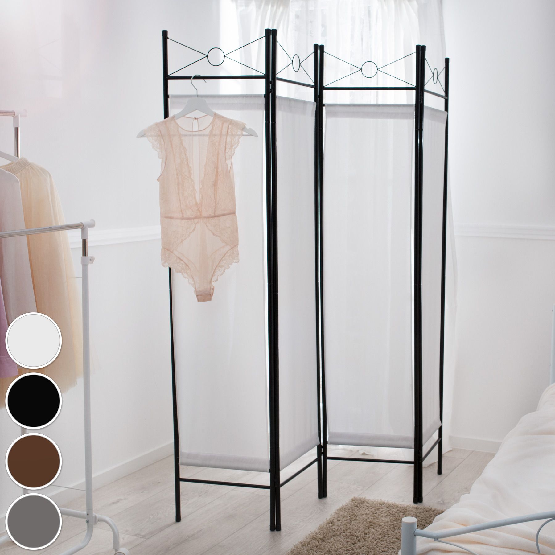 Aus stabilem Eisenrahmen und Polyester-Stoff, 160cm breit und 180cm hoch. Das elegante Kreisdesign oben gibt dem Ganzen das besondere Etwas. Leicht zusammenzuklappen und platzsparend zu verstauen. Perfekt fürs Schlafzimmer, Wohnzimmer oder als Umkleide. Der Stoff lässt noch etwas Licht durch - schafft aber trotzdem genug Privatsphäre!