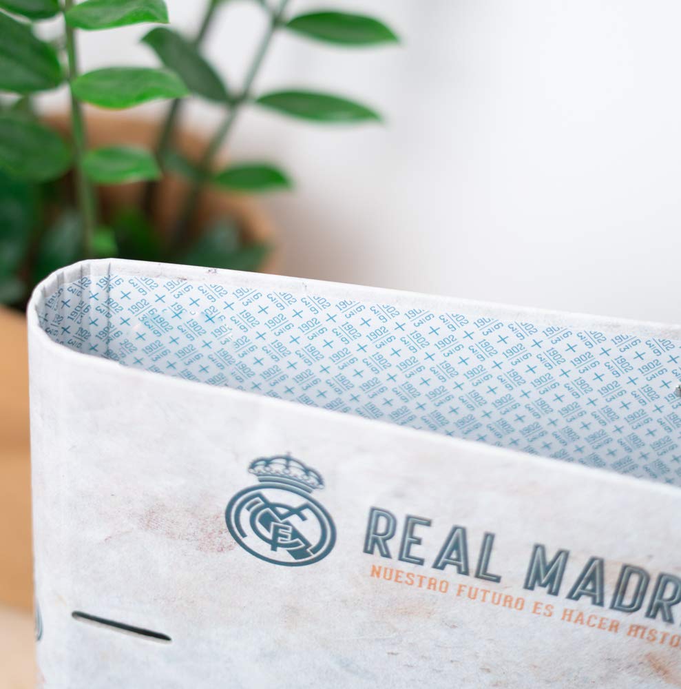 Hala Madrid! Dieser offizielle Real Madrid Schulordner ist genau das Richtige für alle Fans! Aus stabilem Karton mit 4 Ringen für DIN A4 Blätter. 4 cm stark, also passen auch viele Unterlagen rein. Offizielles Lizenzprodukt, also mit den echten Club-Farben und Logo. Perfekt für die Schule, Uni oder Büro. Zeig deine Vereinstreue und organisiere dabei deine Unterlagen. Macht sich super im Schulranzen oder auf dem Schreibtisch. Ein Muss für jeden Madridista! Einfach Papiere rein und deine Liebe zum Verein zeigen.