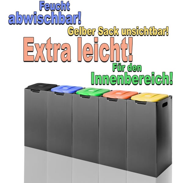 Endlich Ordnung im Müllchaos! Dieses praktische Mülltrennsystem von BigDean macht Recycling zum Kinderspiel. Als kompakter Schrank organisiert es Restmüll, Papier, Gelben Sack und mehr. Made in Italy mit hochwertigen Kunststoff-Behältern die pflegeleicht sind. Integrierte Mülltütenhalterung und herausnehmbare Behälter für einfache Reinigung. Perfekt für Küche, Hauswirtschaftsraum oder Garage. Als 2-Fach-System ideal für kleinere Haushalte, aber erweiterbar. Schafft Platz und sieht dabei noch gut aus. Hygienisch und geruchsarm durch geschlossenes Design. Ein Beitrag zum Umweltschutz der wirklich funktioniert. Auch als Stauraum für Putzmittel nutzbar. Mach deine Mülltrennung effizient und sauber - jeden Tag!