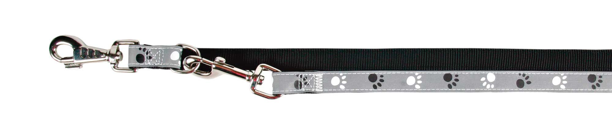 Sicherheit bei Dunkelheit! Die TRIXIE Silver Reflect Hundeleine sorgt für beste Sichtbarkeit bei nächtlichen Spaziergängen. Die Reflektor-Streifen leuchten im Scheinwerferlicht auf - dein Hund ist immer gut zu sehen. Mit 2m Länge und 15mm Breite perfekt für sehr kleine bis kleine Hunde. Aus robustem Polyester gefertigt für hohe Langlebigkeit und Strapazierfähigkeit. Der stabile Bolzenhaken-Verschluss öffnet sich nicht mal bei ruckartigen Bewegungen. 3-fach verstellbar für optimale Handhabung. Besonders im Herbst und Winter ein unverzichtbares Accessoire für jeden Hundehalter. Leicht, handlich und super praktisch. Dein Hund bleibt in deiner Nähe und ihr seid beide sicher unterwegs. In schwarz/silbergrau - dezent und funktional. Eine Leine, die wirklich hält, was sie verspricht!