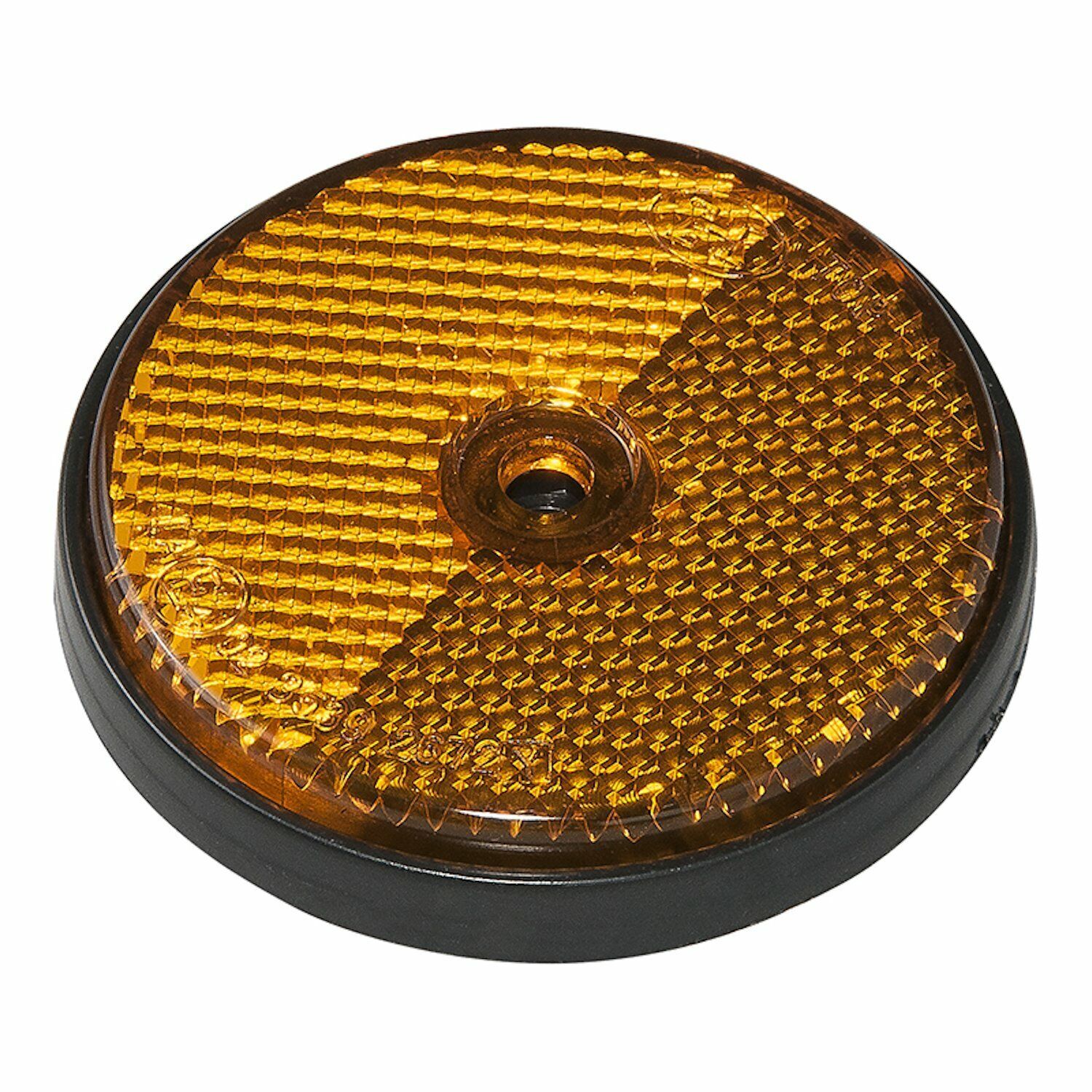 Sicherheit geht vor - besonders wenn es dunkel ist! Mit diesen 8 orangen Reflektor-Anhängern wirst du im Straßenverkehr besser gesehen. Das kann lebenswichtig sein! Die runden Katzenaugen-Reflektoren mit 60mm Durchmesser reflektieren das Licht in alle Richtungen - volle 360 Grad.\\n\\nJedes Set enthält 8 Reflektoren inklusive passender Schrauben und Muttern. Einfach anbringen - kein Kleber nötig. Das wetterfeste Kunststoff/Harz-Material hält auch bei Regen, Schnee oder extremen Temperaturen stand und ist kratzresistent.\\n\\nPerfekt für:\\n• Fahrräder (Rahmen, Sattel, Räder)\\n• Kinderfahrräder und Skateboards\\n• Roller und Wanderstöcke\\n• Gepäckträger\\n• PKW-Anhänger und LKWs\\n• Gartenbereiche und Outdoor-Ausrüstung\\n\\nBesonders praktisch: Die Reflektoren sind nicht nur für Fahrräder geeignet, sondern für alles, was nachts sichtbar sein sollte. Ob du nun regelmäßig im Dunkeln radelst oder einfach nur sichergehen willst, dass deine Kinder auf ihrem Schulweg gesehen werden - diese Reflektoren geben dir ein sicheres Gefühl.\\n\\nEinfach anbringen und entspannter unterwegs sein - deine Sicherheit ist es wert!